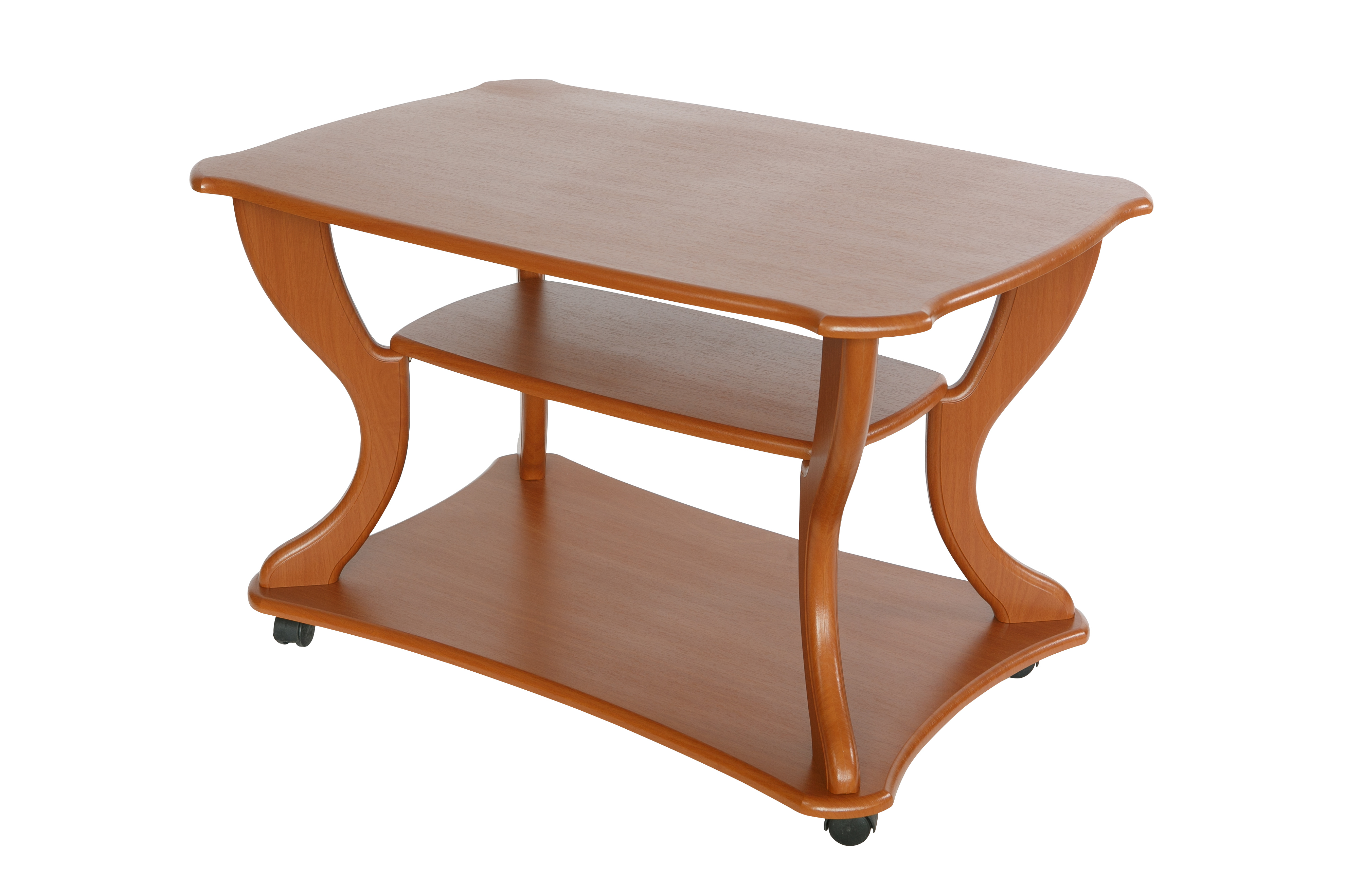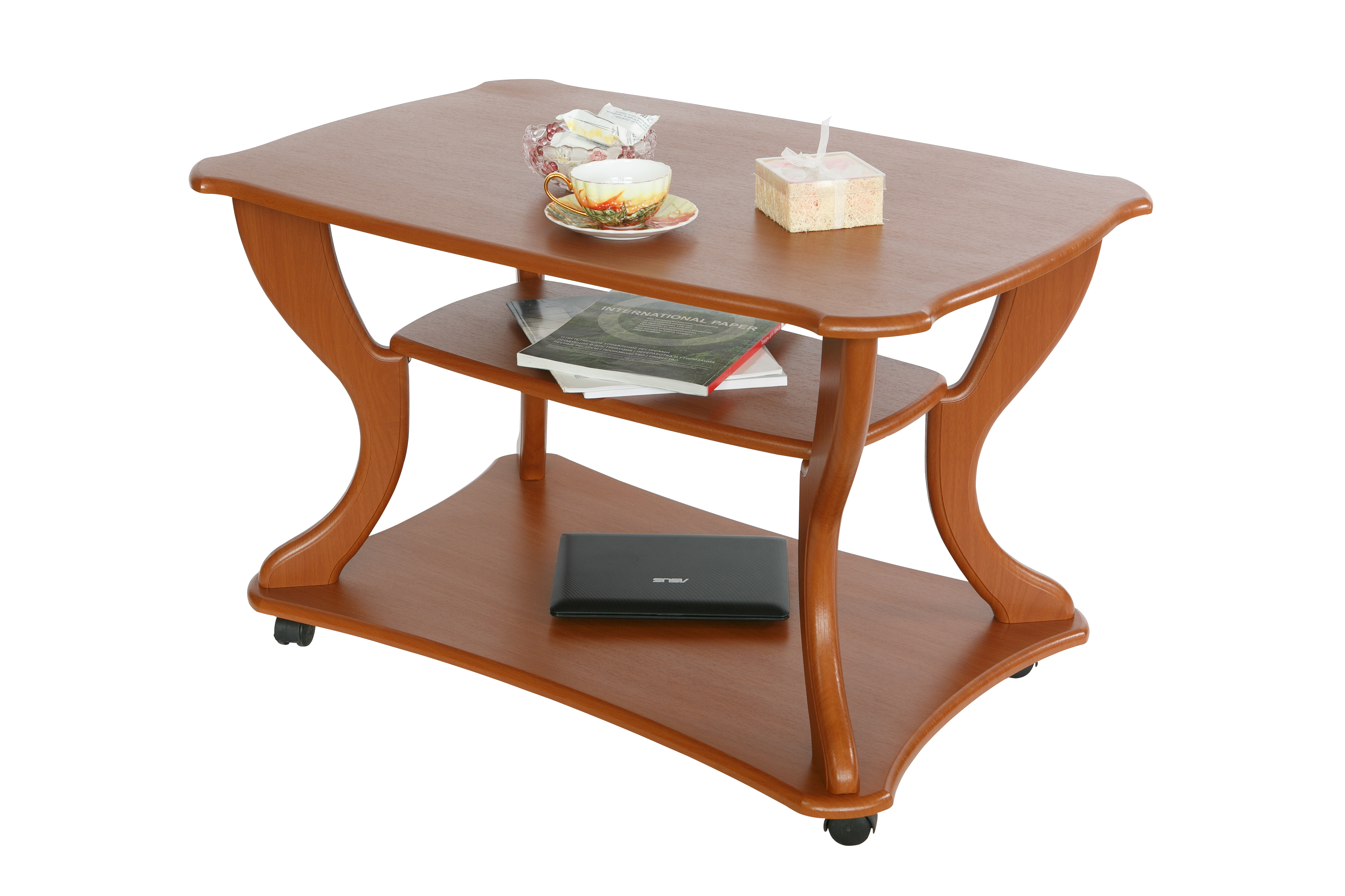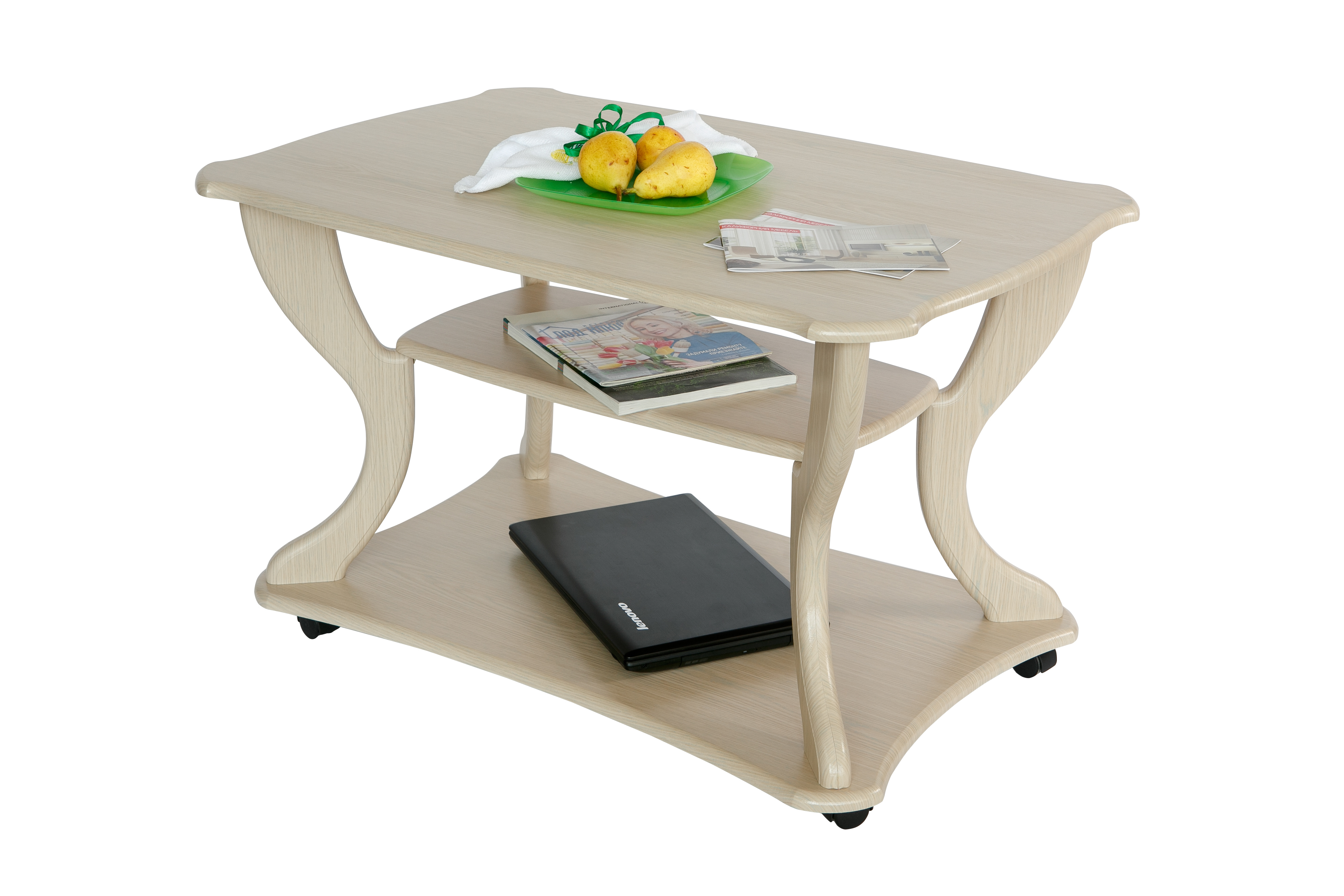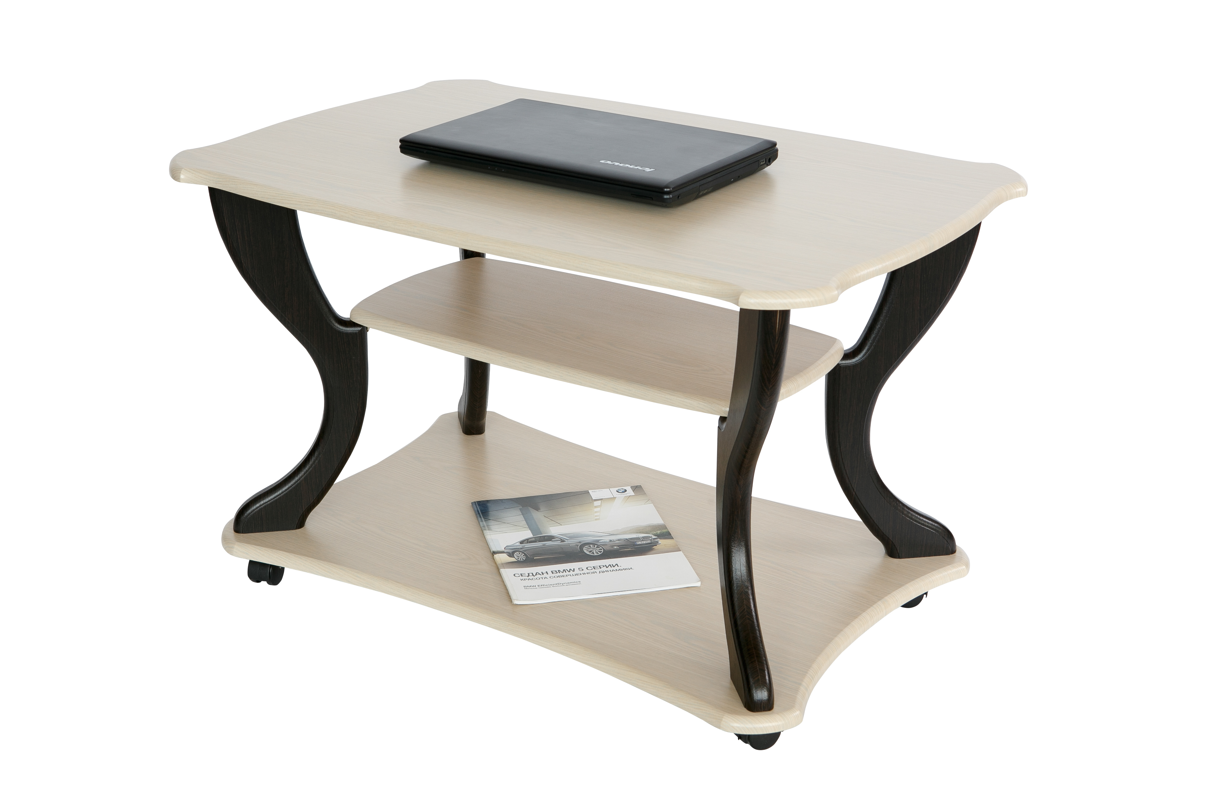 Журнальный стол по праву можно считать самым красивым предметом интерьера.Красивый и изящный журнальный стол «Маэстро» станет акцентом внимания в любом интерьере. Стол дополнен полкой длиной 600 мм, шириной 300 мм и основанием на колесной опоре, что позволит легко перемещать его по комнате. Размер столешницы: длина 900 мм, ширина 600 мм, высота стола 560 мм.