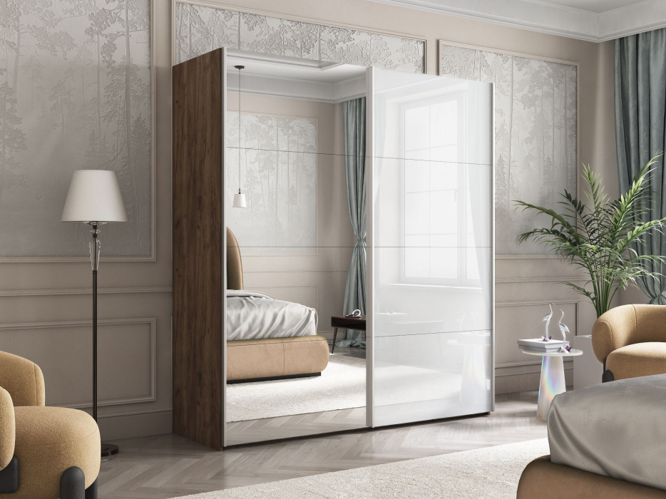 Шкаф Эста дуо Стекло белое/зеркало 2400 х 1600 х 660 Код I0000391780