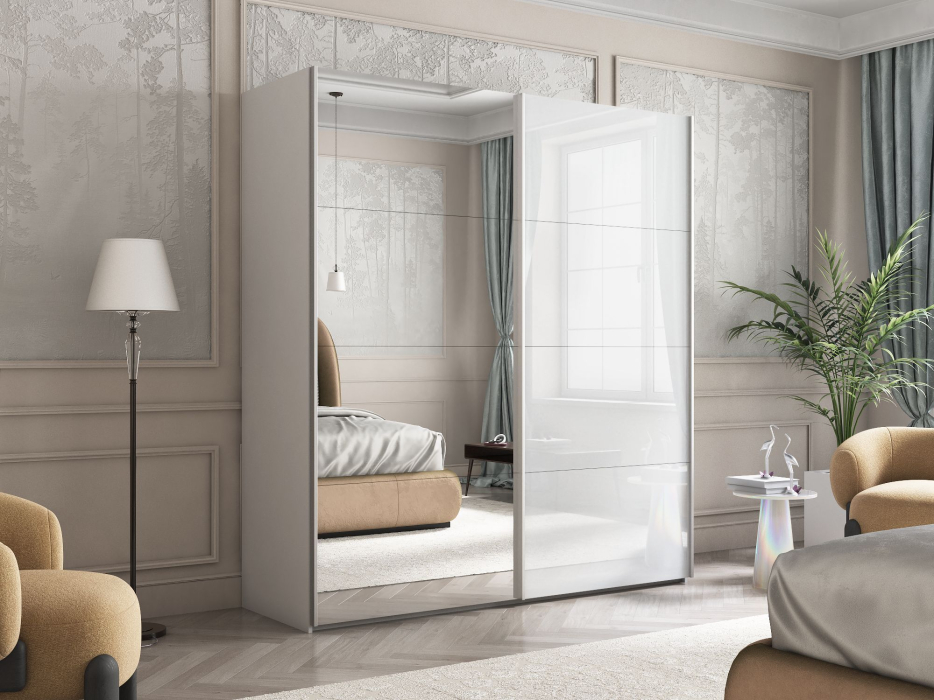 Отзывы о Столплит Шкаф Эста дуо Стекло белое/зеркало 2400 х 1600 х 660 Белый снег