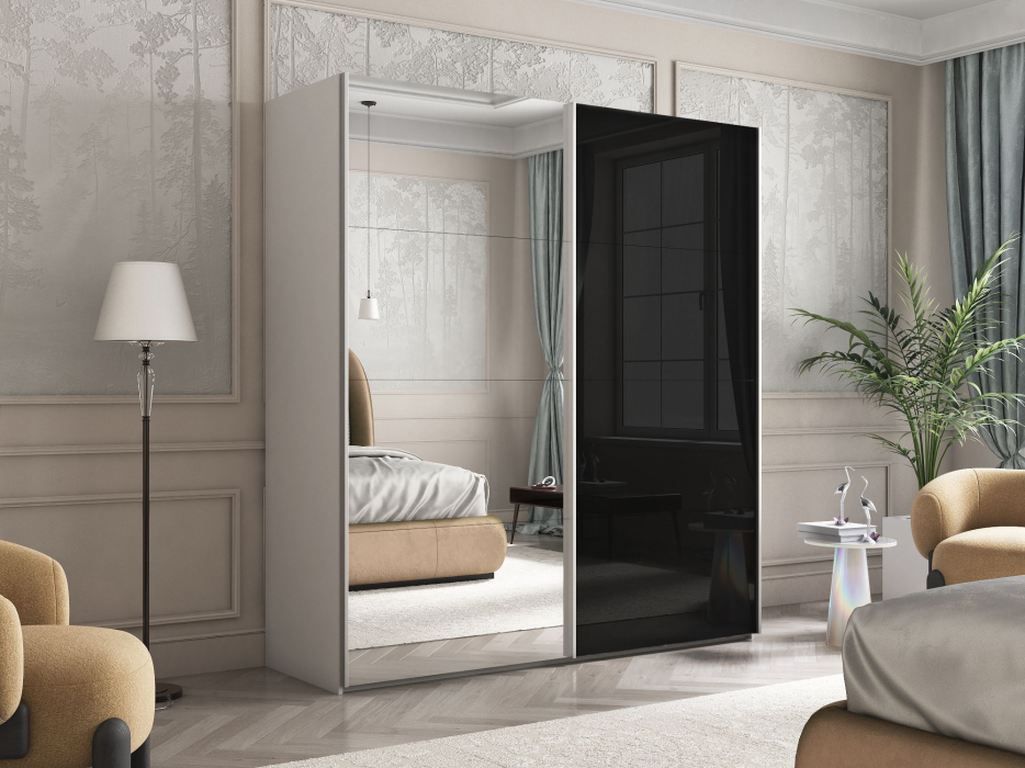 Отзывы о Столплит Шкаф Эста дуо Стекло черное/зеркало 2400 х 1600 х 660 Белый снег