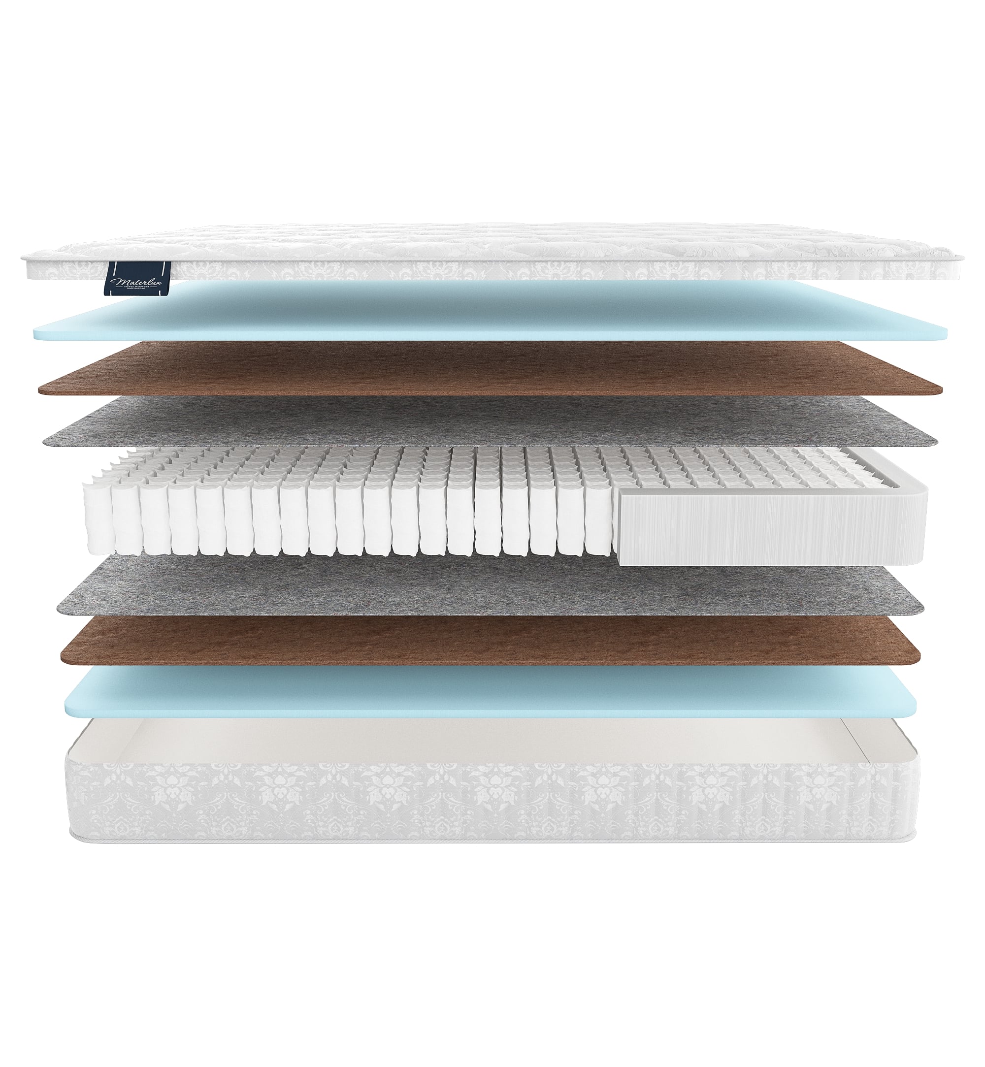 Feltro Termico — плотный термофиксированный фетр из шерсти и хлопка. Мы прокладываем слой фетра между пружинами и наполнителями. Материал защищает слои от давления пружинами, поэтому матрас служит дольше, сохраняет упругость и ортопедические свойства.