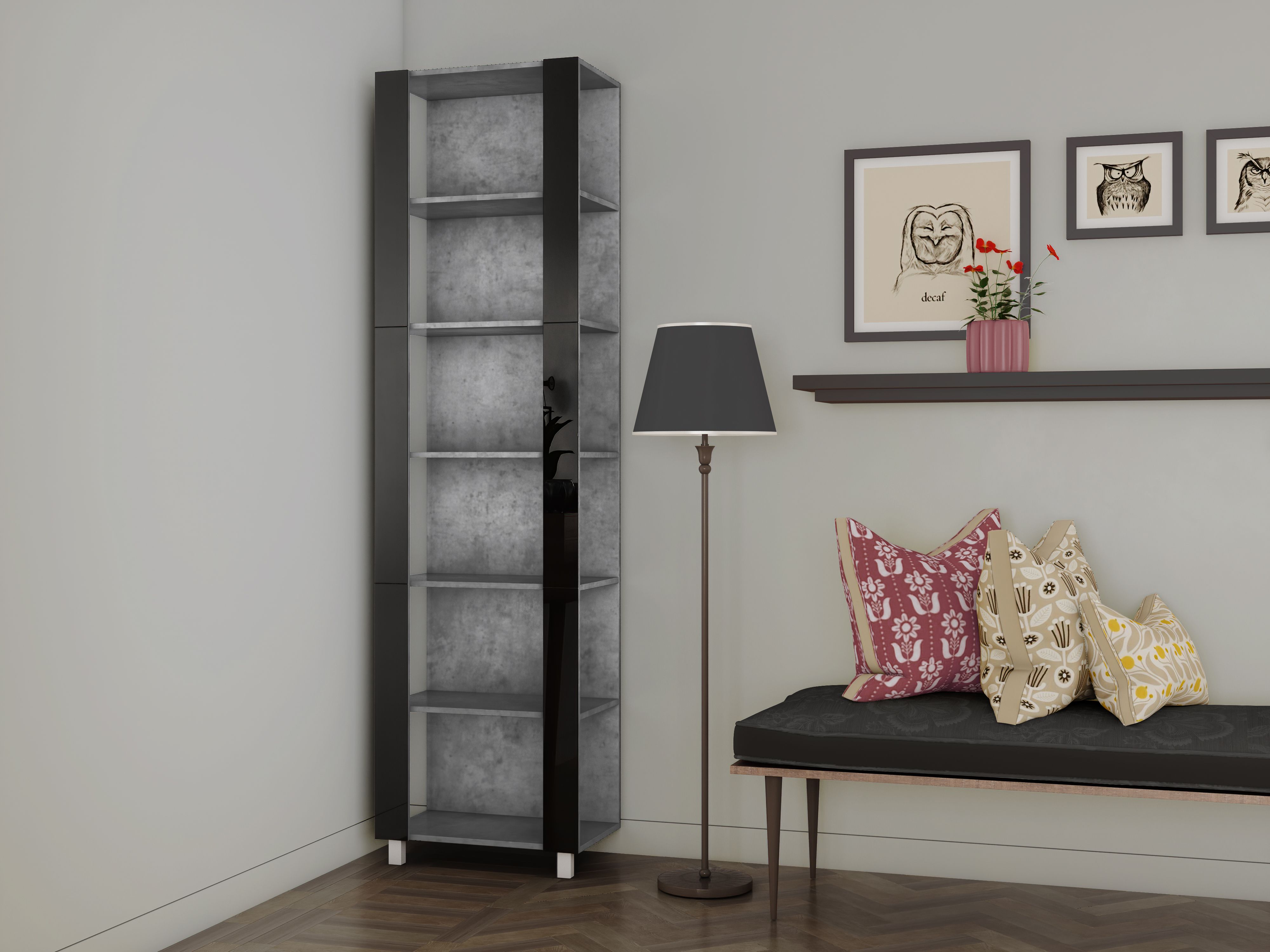 Отзывы о Столплит Стеллаж модульный Универсальный 35х44х220 Черное стекло Бетон