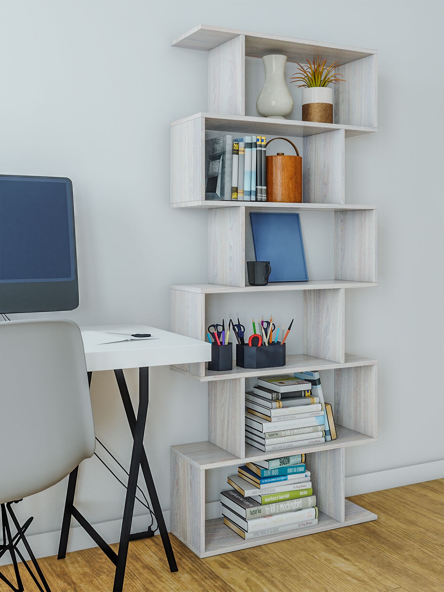 Отзывы о Столплит Стеллаж Ник змейка 73х25х173,2 Ясень Анкор светлый