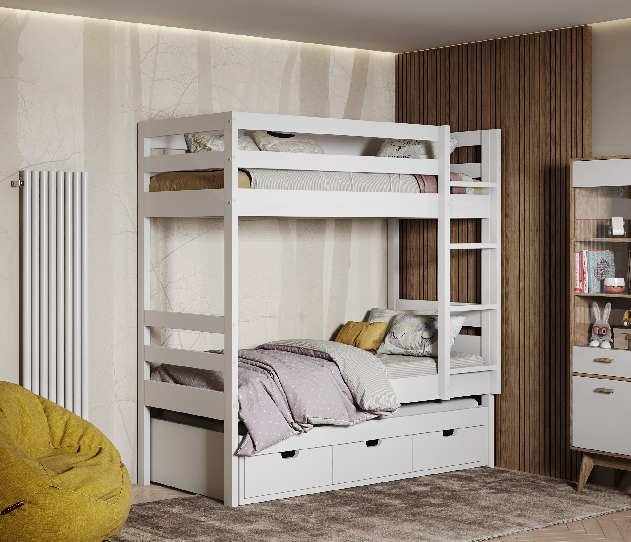 Кровать двухъярусная Ферст, массив сосны - отличная модель, которую вы сможете недорого купить в нашем магазине.Стильный и выдержанный дизайн данной модели позволит вам разместить его практически в любом помещении. Продуманная конструкция модели, впишется даже в небольшое пространство.Для создания Кровати двухъярусной Ферст- использовался прочный и приятный на ощупь материал массива сосны. Благодаря качественным материалам данная модель прослужит вам долгие годы.