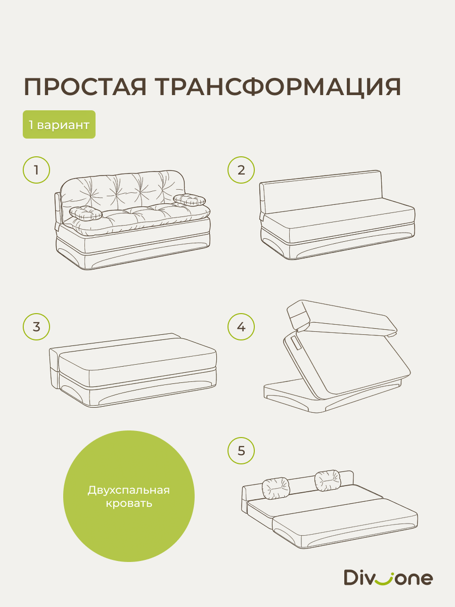 Если вы ищете предмет интерьера, способный стать центром притяжения для всей семьи, то продукция Div-one станет вашим идеальным решением. Представляем вам раскладной диван кровать «Клиффорд Макси» — воплощение современного комфорта и безупречной функциональности. Размещенный в просторной лофт гостиной, он легко позволяет с удобством расположить большую компанию. Перина матрас поможет организовать дополнительное гостевое ложе, когда это необходимо. Трансформация без механизма: а) Достаточно отодвинуть изделие от стены и плавно опустить спинку (200х120см). б) Можно откинуть прямой диван как книжку на пол и получить полноценное двухспальное место для взрослых (200х190см). В разложенном состоянии образуется ровная и прямая поверхность, обеспечивающая ортопедический правильную поддержку тела и гарантирующая полноценный отдых во время сна. Модель без ножек рассчитана на максимальную нагрузку до 200 килограмм, что подтверждает её надежность.