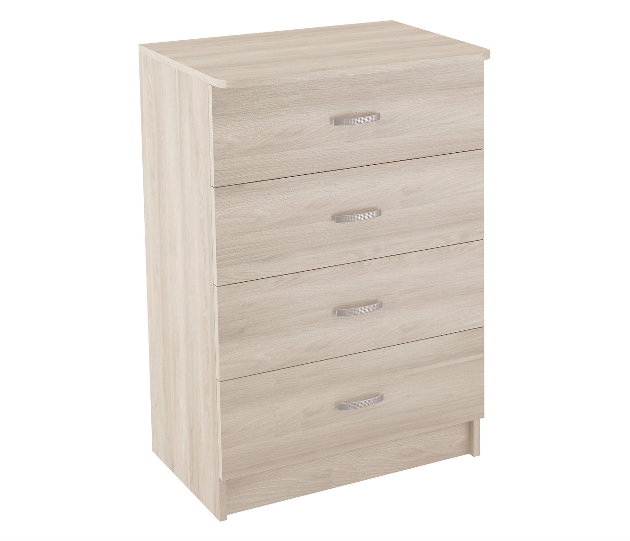 Комод КМ-10 изготовлен из ЛДСП.Вместительный ,оснащён четырьмя выдвижными ящиками на роликовых направляющих.Высота комода 910мм,ширина 620 мм,глуб 430 мм.Ручки пластик,под цвет серебра ,благодаря небольшим размерам,впишется в интерьер любого помещения.