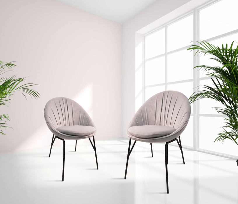 Очаровательный уютный стул для гостиной, спальни и кухни станет украшением Вашего интерьера. Мягкая форма приглашает присесть в него. Обивка - вельвет. Обивка спинки на лицевой части уложена мягкими красивыми складками. Опоры металлические, окрашены черным.
