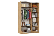 Лицевые элементы оформлены кромкой ПВХ толщиной 2 мм . Внутренние и скрытые детали защищены кромкой ПВХ толщиной 0,4 мм. Штанга для одежды расположена в левой части корпуса, выдерживает нагрузку до 22кг.