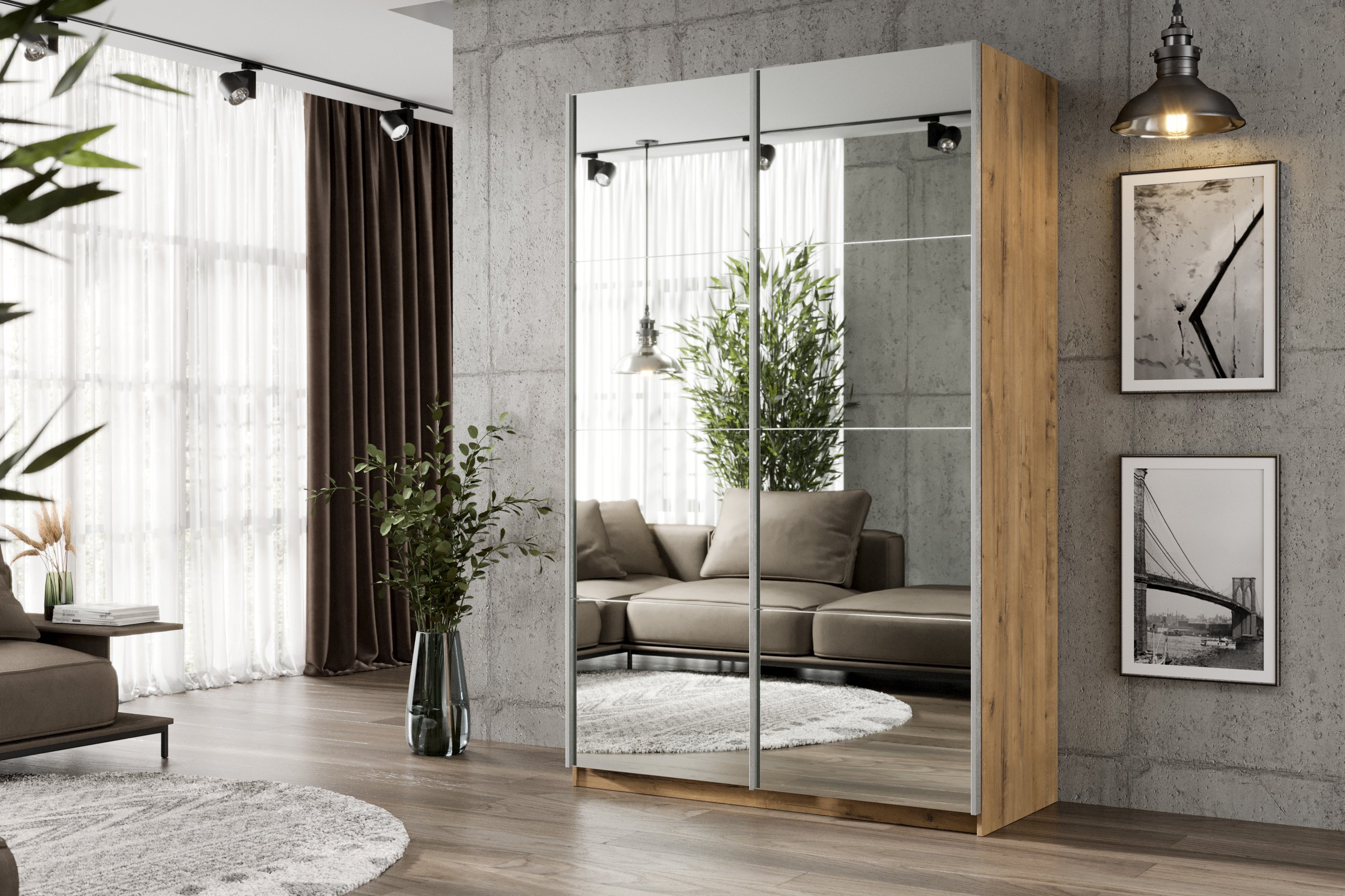 Шкаф-купе Smart 1624 2х дверный (фасады зеркало) профиль серебро (Бунратти)