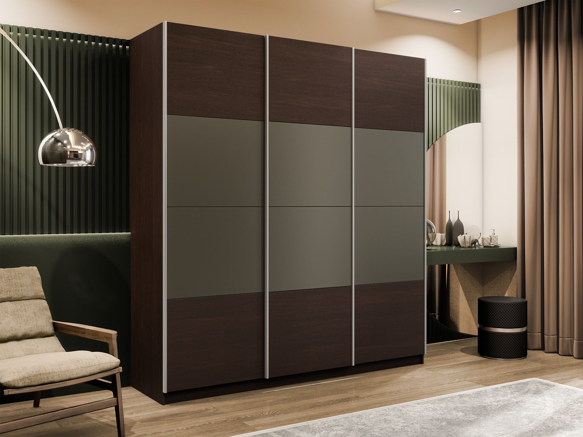 Шкаф-купе Эста 3-х дверный ДСП/Стекла хаки/Доводчик 240х66х240 (Венге мали) Код I0000408472