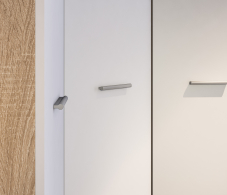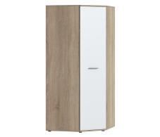 Габариты углового шкафа Мамбо СБ-2678 – ширина 86 см, высота 191 см и глубина 86 см. Это одно вместительное отделение со штангой для верхней одежды с антресолью сверху. Выполнен шкаф из прочного и современного материала КДСП. Цвет отделки корпуса – «Дуб Сонома», а фасадные поверхности белого цвета. Благодаря светлым тонам, шкаф не выглядит громоздким.