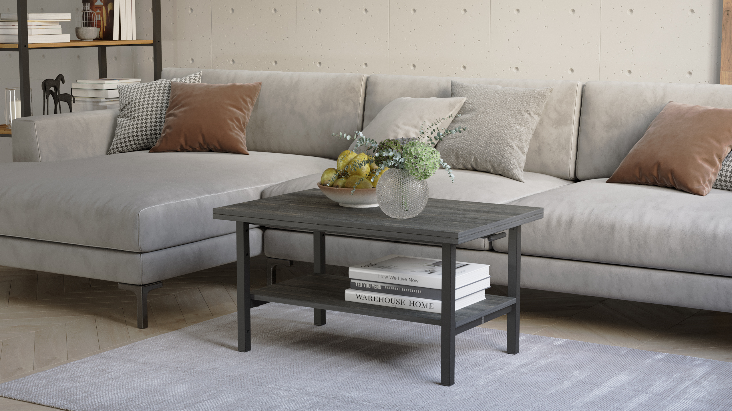 Такое функциональное решение идеально подойдет для небольших помещений, где важно эффективно использовать пространство. Стол журнальный может служить как обычным столом в гостиной, так и столиком приставным рядом с диваном или креслом. Его можно использовать для размещения напитков, книг, журналов или просто как элемент декора.