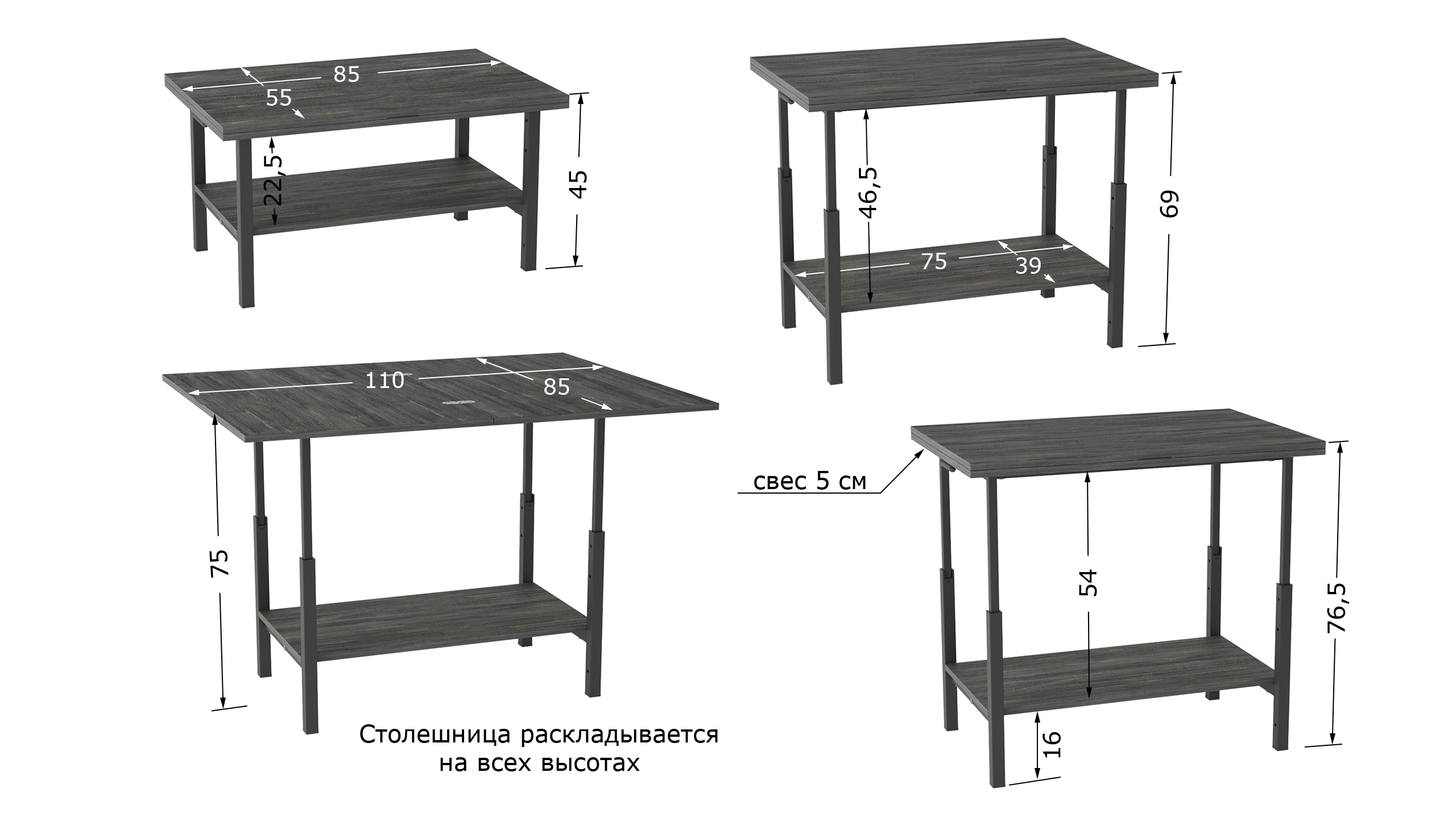 Легкий и компактный, стол трансформер легко перемещается, что позволяет использовать его в разных зонах: в гостиной, спальне или даже на даче. Кроме того, это отличное решение для гостей, когда необходимо создать дополнительное место для сервировки или размещения напитков.