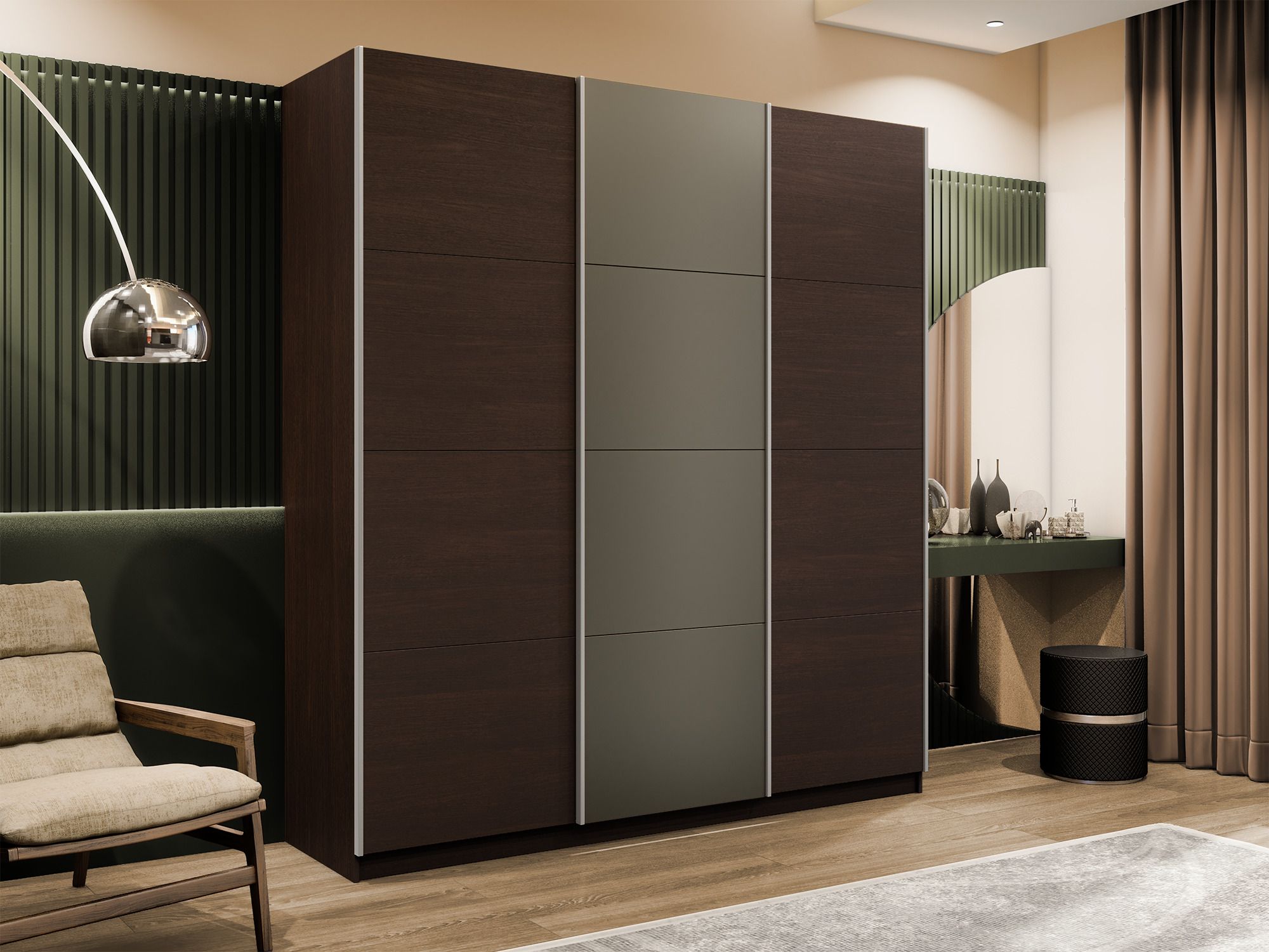 Отзывы о Столплит Шкаф-купе Эста 3-х дверный ДСП/Стекла хаки/Доводчик 240х66х240 Венге мали