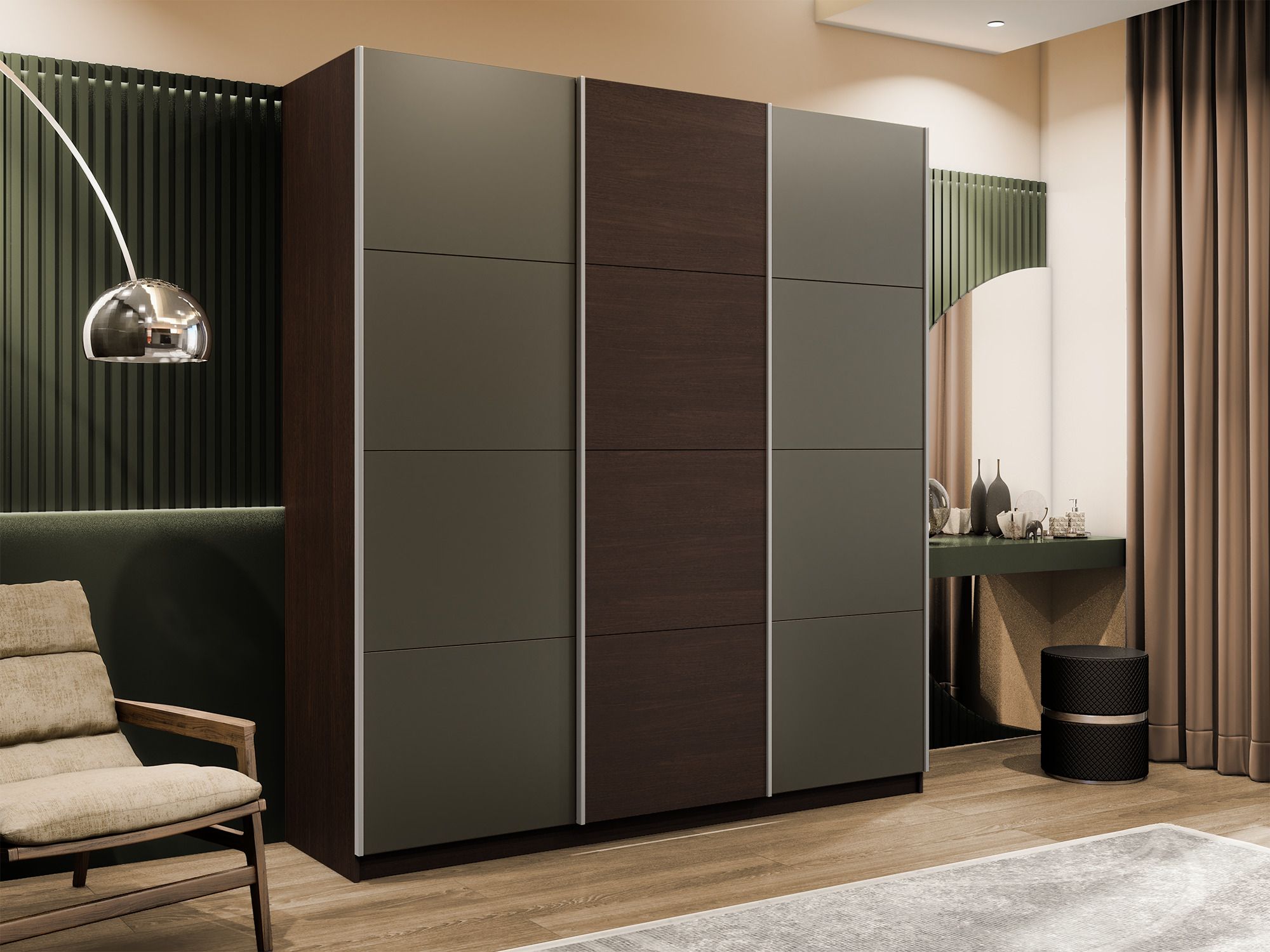 Отзывы о Столплит Шкаф-купе Прайм 3-х дверный Стекла хаки/ДСП/Доводчики 180х57х230 Венге