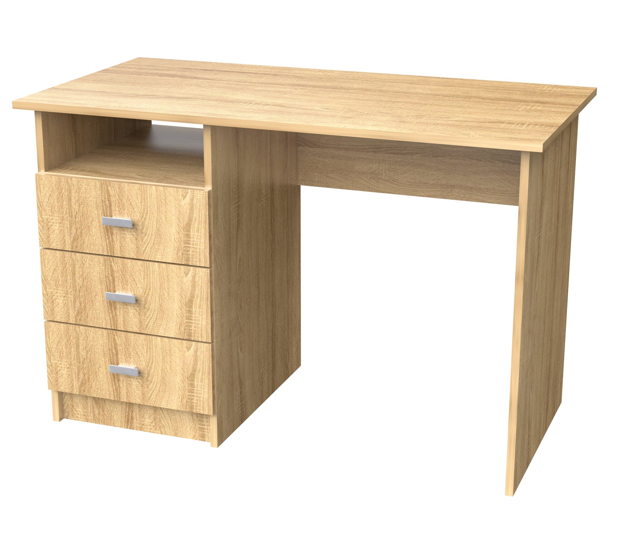 Стол СТ-5 изготовлен из ЛДСП.Оснащён тумбой с выдвижными ящиками.Сборка только как на фото,на другую сторону не предусмотрено.Ширина 110 см,Выс 75 см,глуб 57 см.Удобен в использовании как для кабинета,так и для школьников.