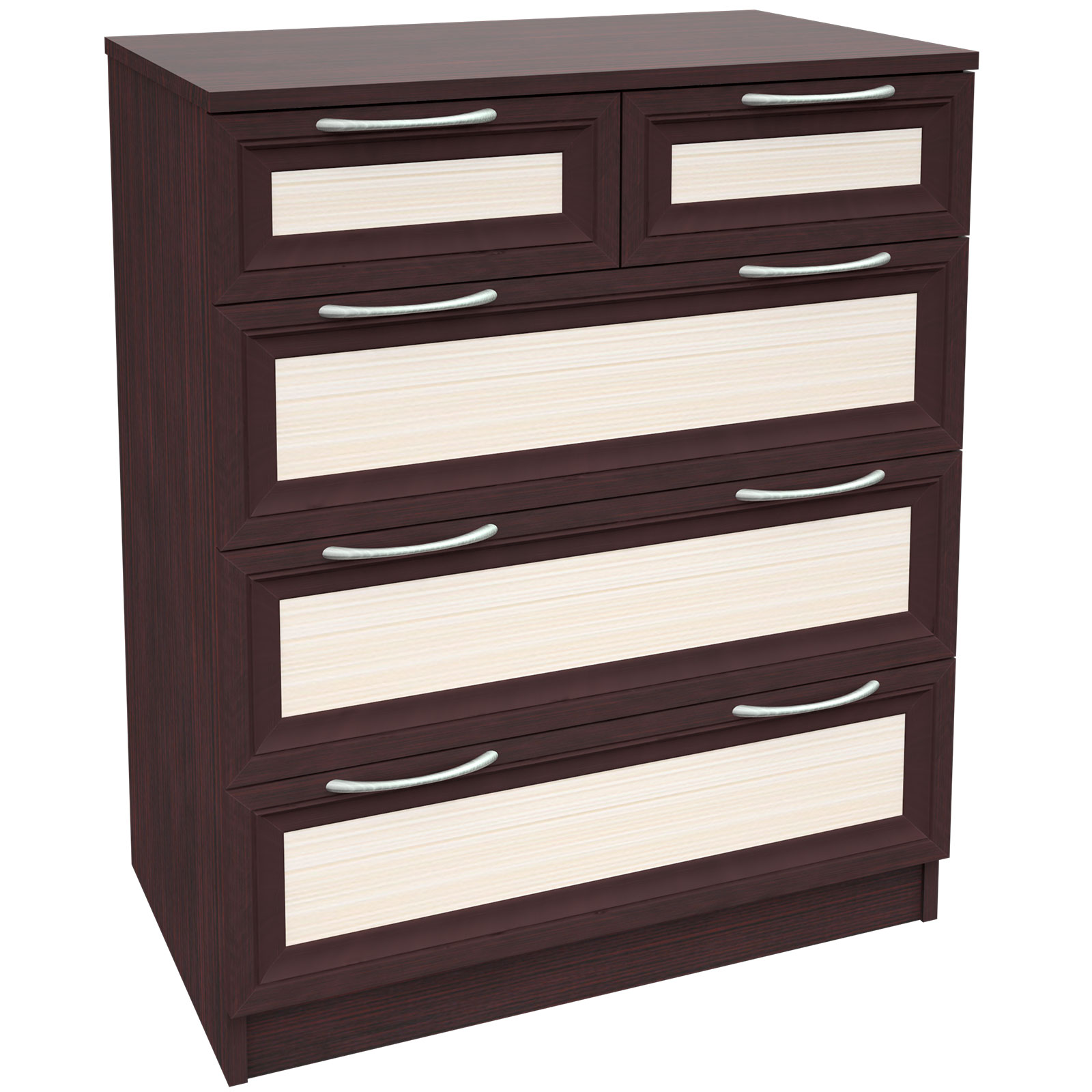 комод 6 отличается не большими размерами,но хорошей вместимостью.Оснащён 4-мя большими и 2-мя маленькими выдвижными ящиками,позволяющими хранить множество вещей.Корпус из качественного ЛДСП,фасады рамочные МДФ.Производитель сохраняет за собой право менять фурнитуру.