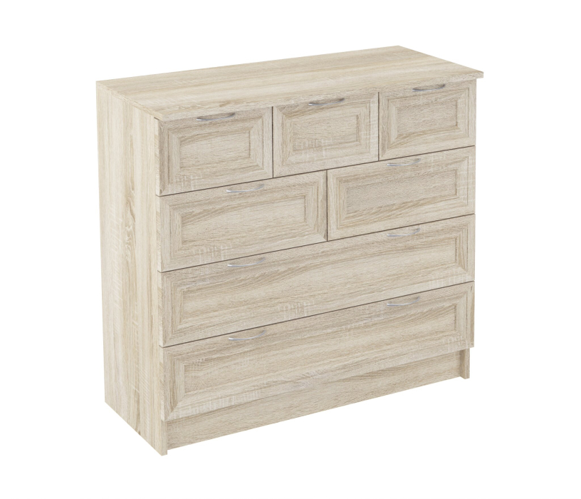 Комод 21 отличается большими размерами и многофункциональностью в использовании.Два нижних ящика больших размеров,остальные 5 размером меньше,что позволяет размещать вещи разной габаритности.Корпус ЛДСП,фасады рамочные МДФ.Производитель оставляет за собой право менять фурнитуру.