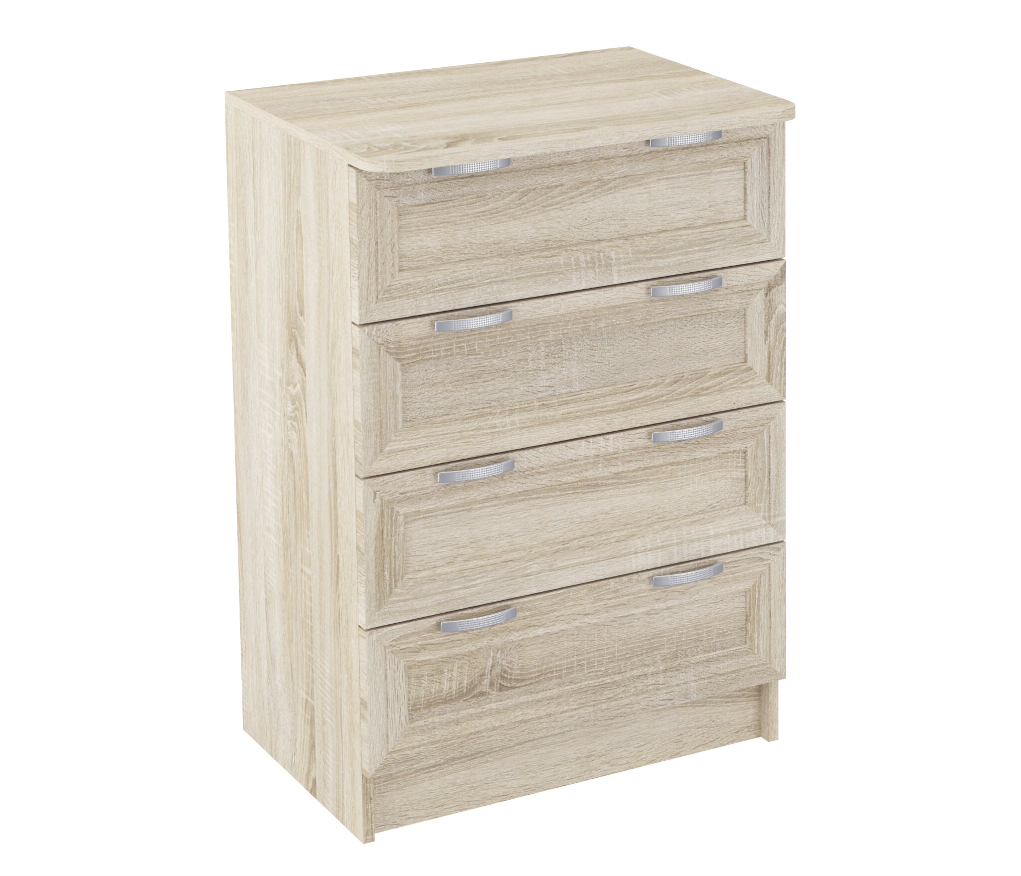 Комод ВС 600благодаря не большой ширине 62 см,удачно разместится даже в маленьком помещении.Тем не менее,4 выдвижных ящика,позволяют разместить множество вещей.Корпус ЛДСП,фасады рамочные МДФ.