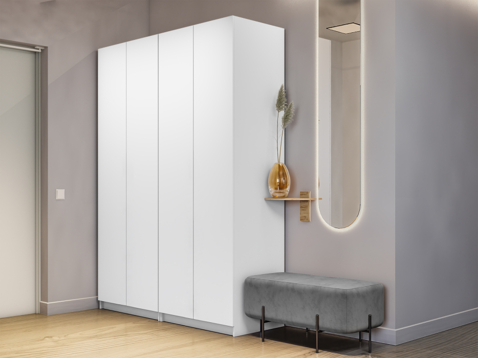 Шкаф складной Е1 Локер ("Гармошка" с системой Push to Move/Правый)162х52.5х220 см, с модулем (Белый снег)