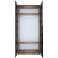 Шкаф распашной Е1 Локер 101x52.5x220 см, с черным стеклом (Дуб/крафт/табак)