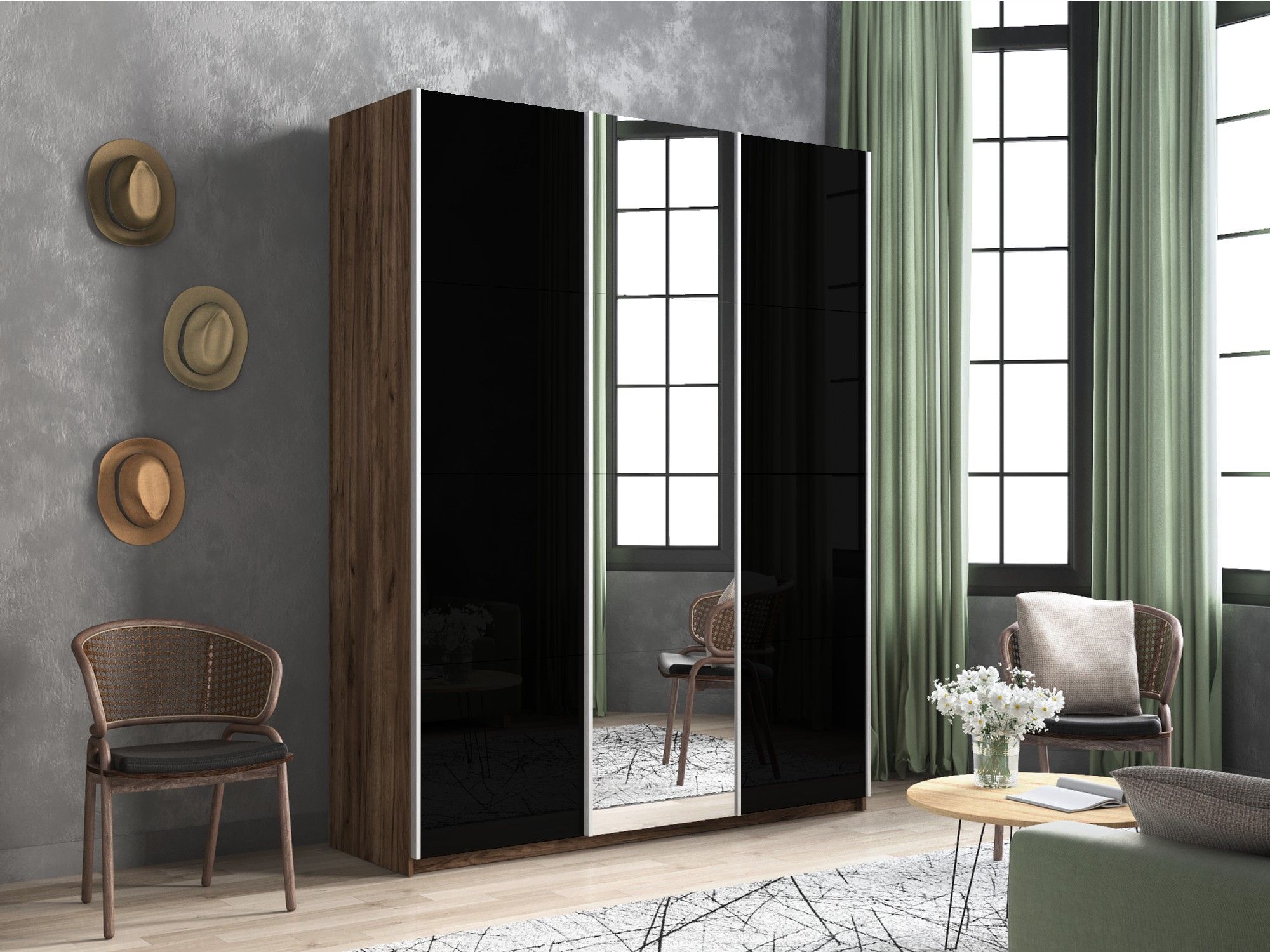 Отзывы о Столплит Шкаф-купе Прайм 3-х дверный Стекла черные/Зеркало/Доводчики 210х57х230 Дуб/крафт/табак