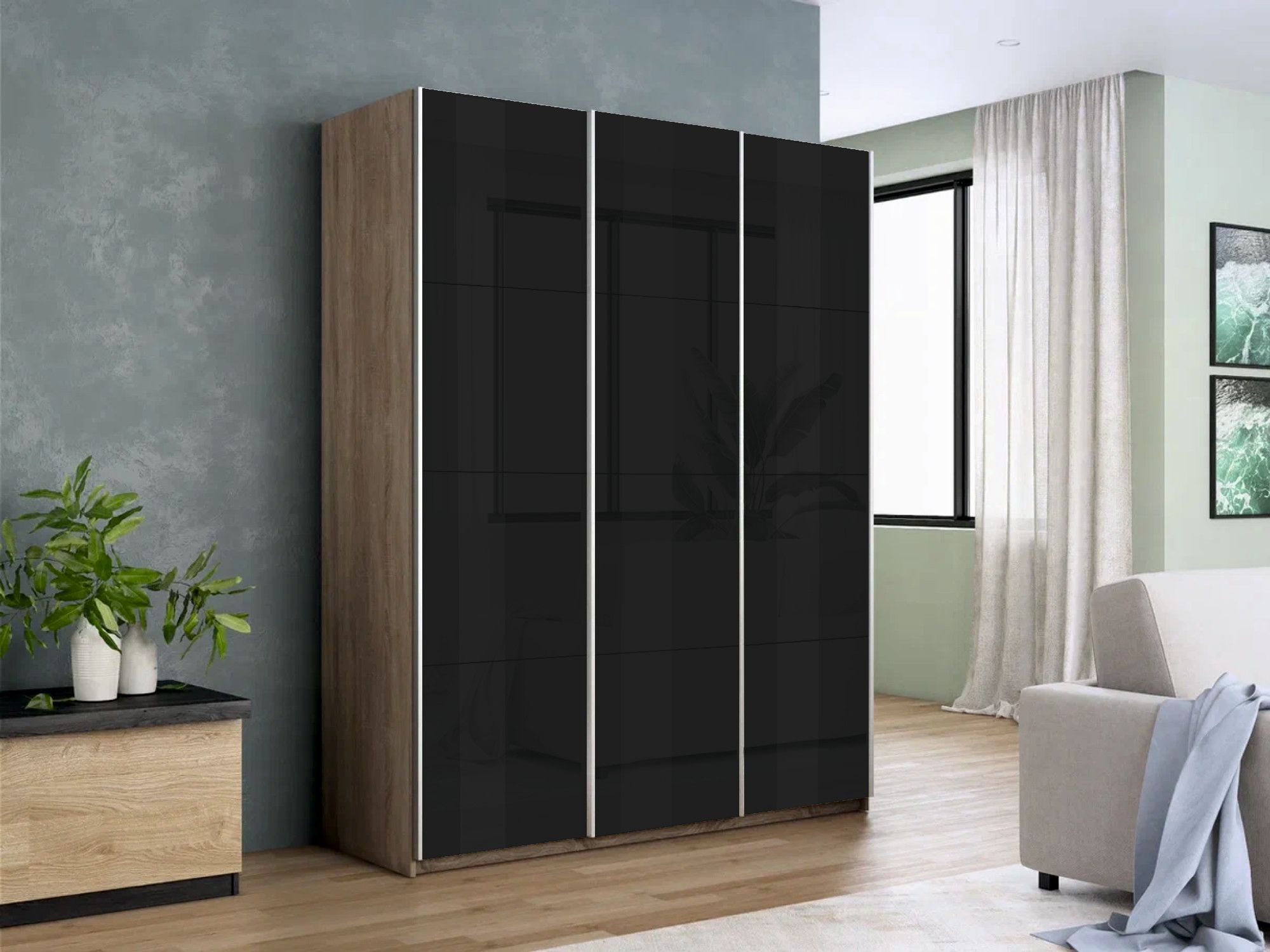 Отзывы о Столплит Шкаф-купе Прайм 3-х дверный Стекла черные/Доводчики 210х57х230 Дуб сонома
