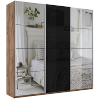Отзывы о Столплит Шкаф-купе Прайм 3-х дверный Зеркала/Стекло черное/Доводчики 210х57х230 Дуб/крафт/табак