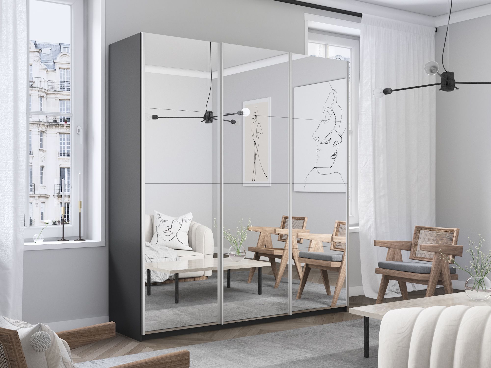 Отзывы о Столплит Шкаф-купе Широкий Прайм 3-х дверный Зеркала/Доводчики 240х57х230 Серый диамант