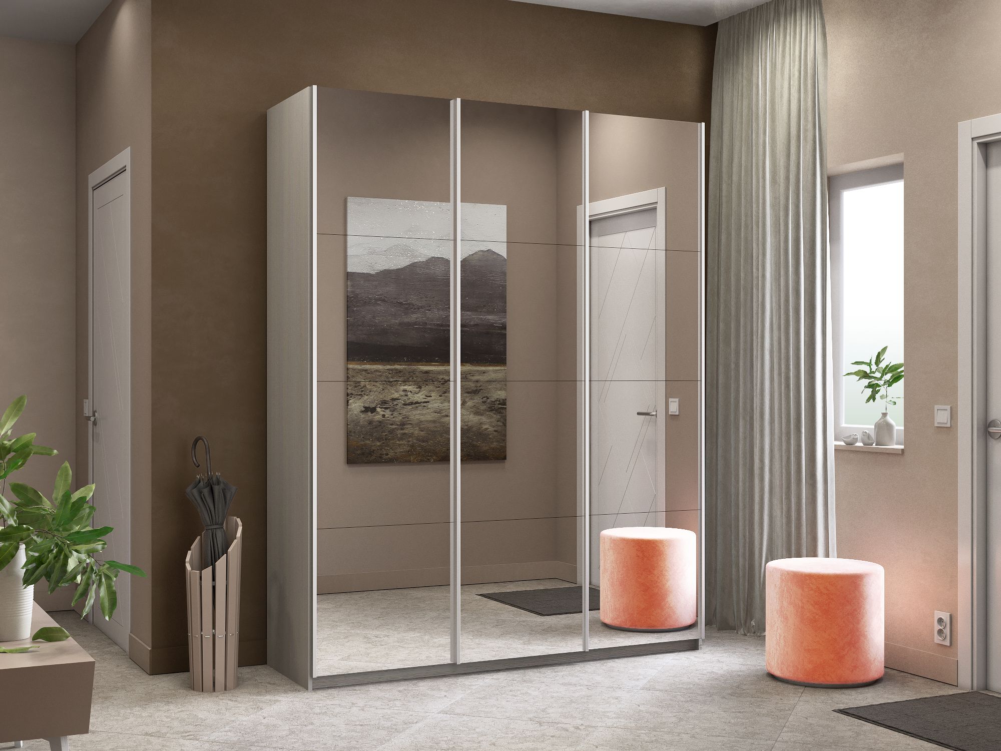 Отзывы о Столплит Шкаф-купе Широкий Прайм 3-х дверный Зеркала/Доводчики 240х57х230 Ясень Анкор светлый