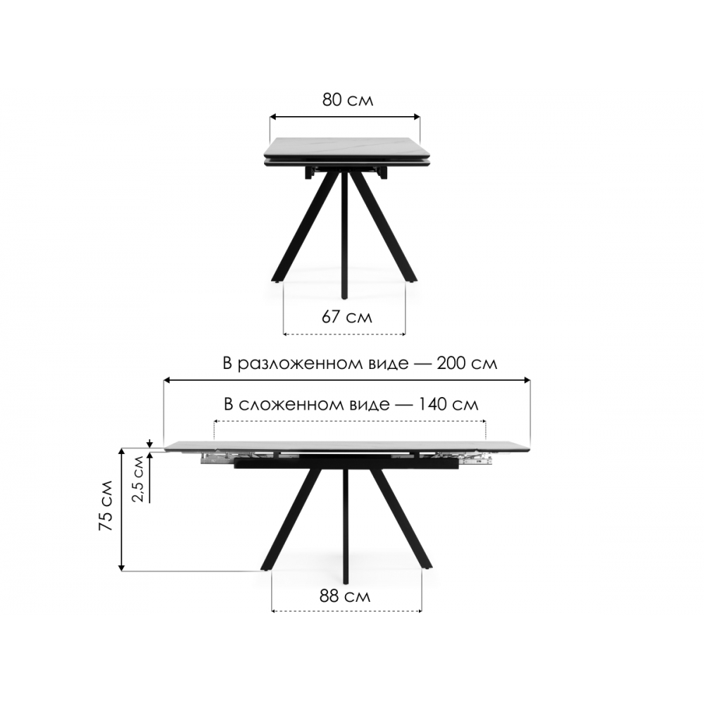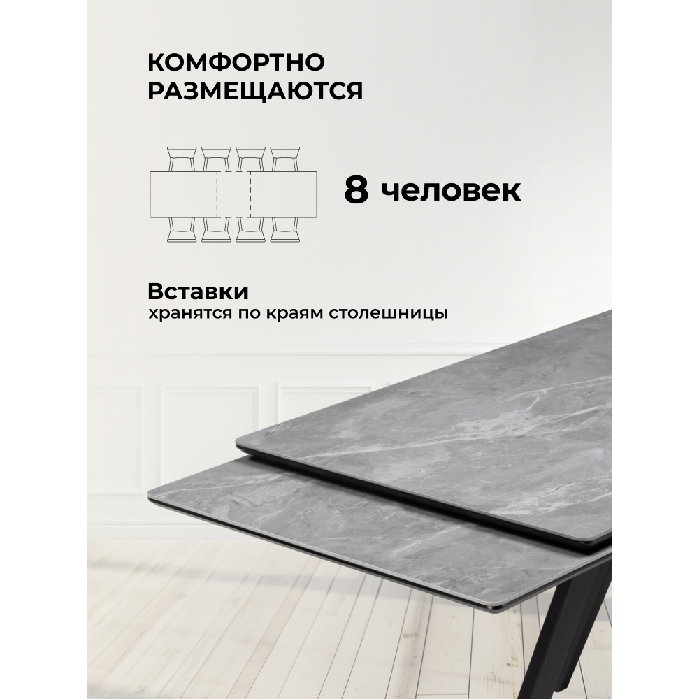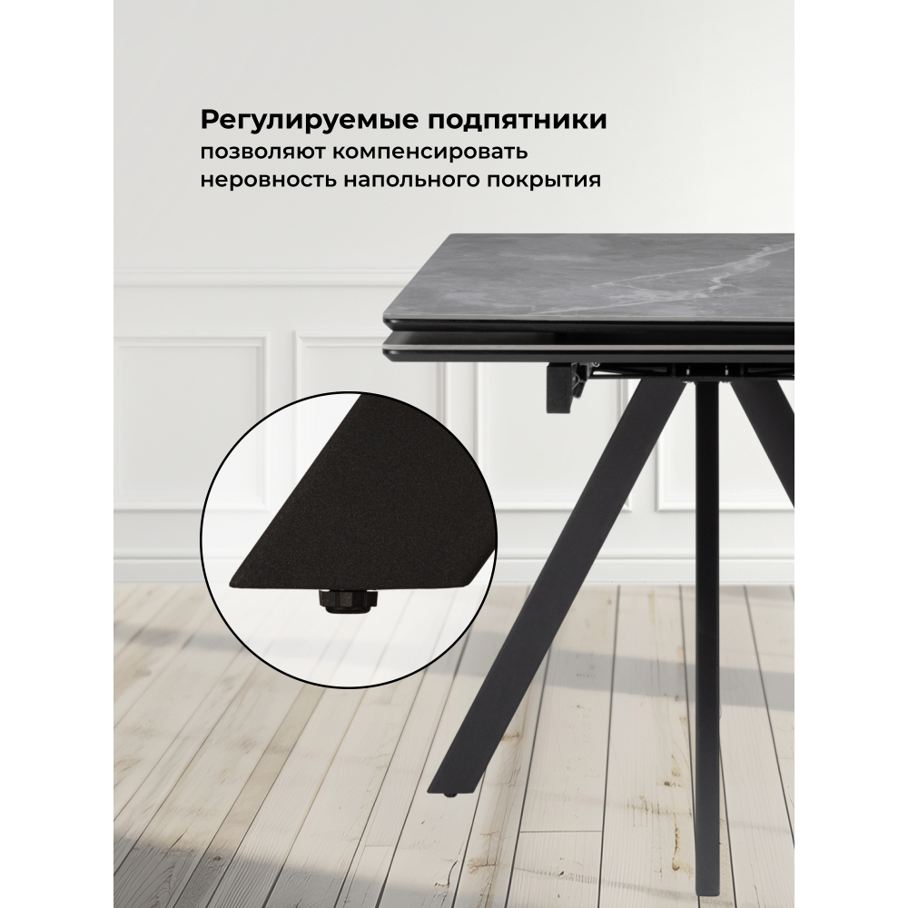 Керамическая поверхность устойчива к повреждениям, легко очищается и не боится высоких температур, что делает стол практичным в использовании.