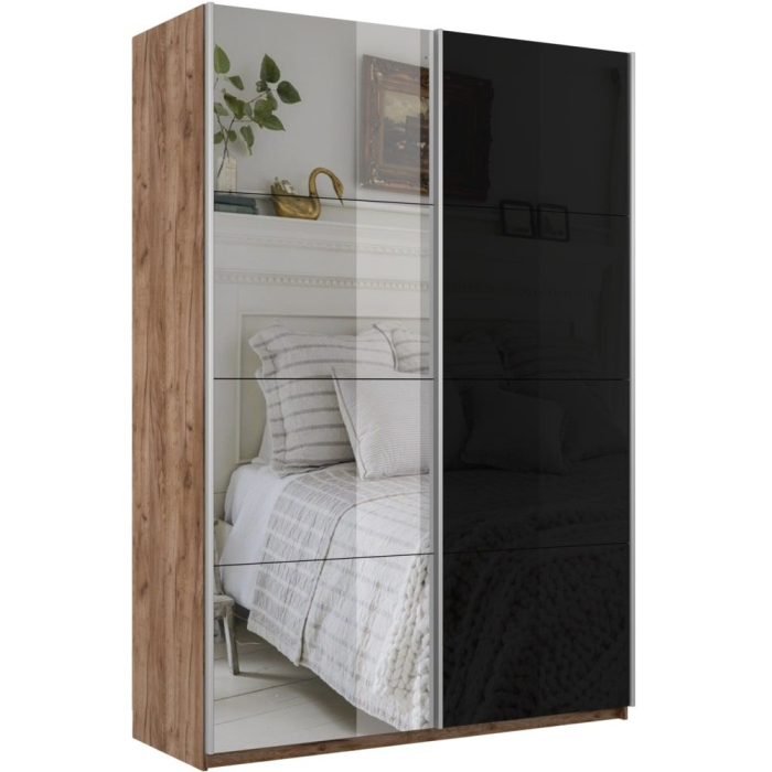 Отзывы о Столплит Шкаф-купе Прайм 2х дверный Зеркало/Стекло черное 160х57х230 Дуб/крафт/табак