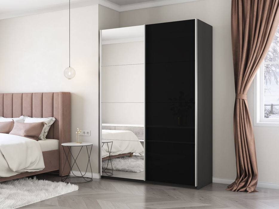 Отзывы о Столплит Шкаф-купе Прайм 2х дверный Зеркало/Стекло черное 160х57х230 Темно-серый