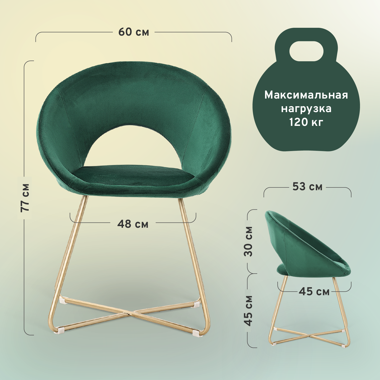 Основание кресла выполнено из металла, что гарантирует его прочность и долговечность. Максимальная нагрузка на кресло составляет 120 кг, что позволяет использовать его для людей разного телосложения.