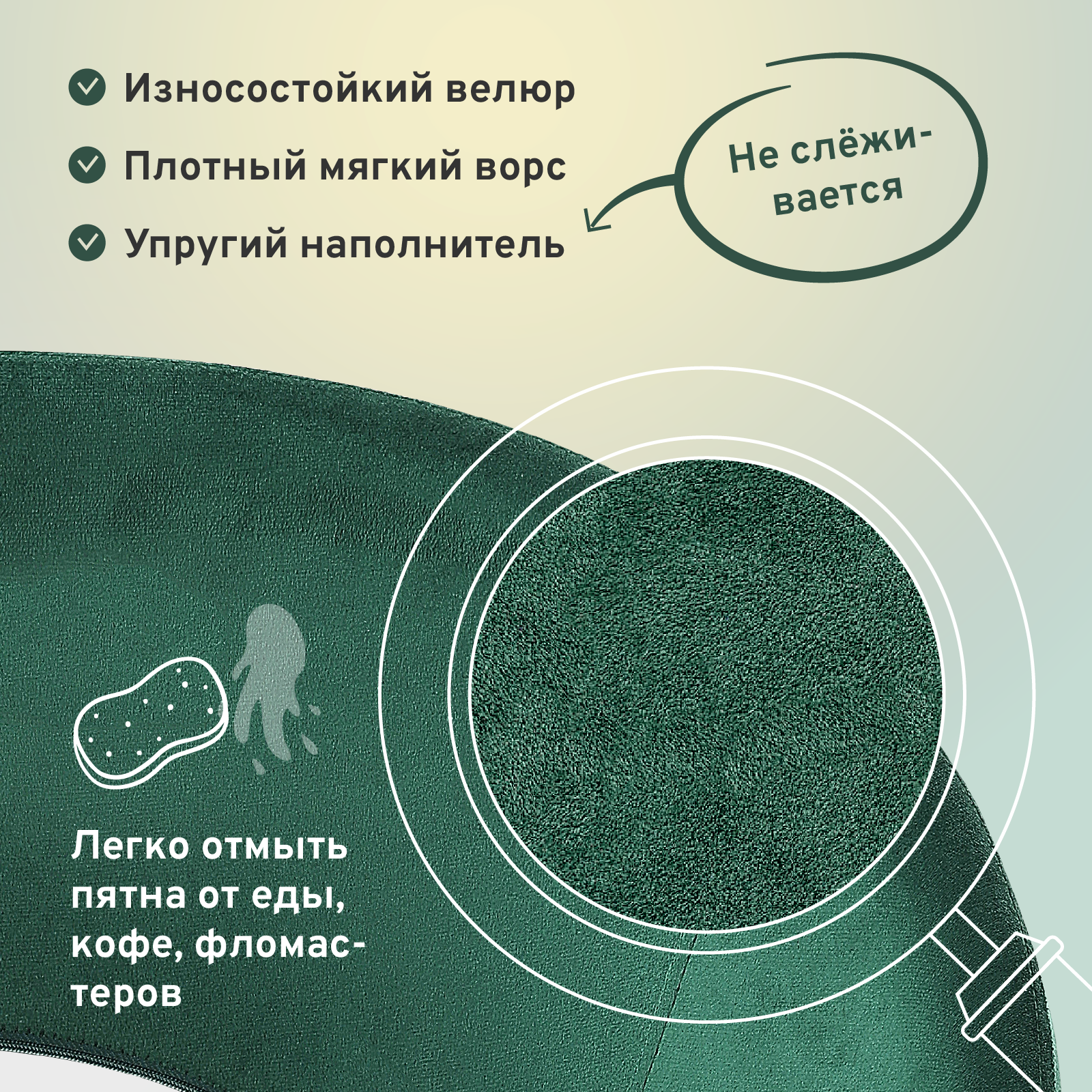 Обивка кресла выполнена из качественного велюра, который приятен на ощупь и легко чистится. Благодаря этому материалу, кресло будет служить вам долгое время, сохраняя свой первоначальный вид.