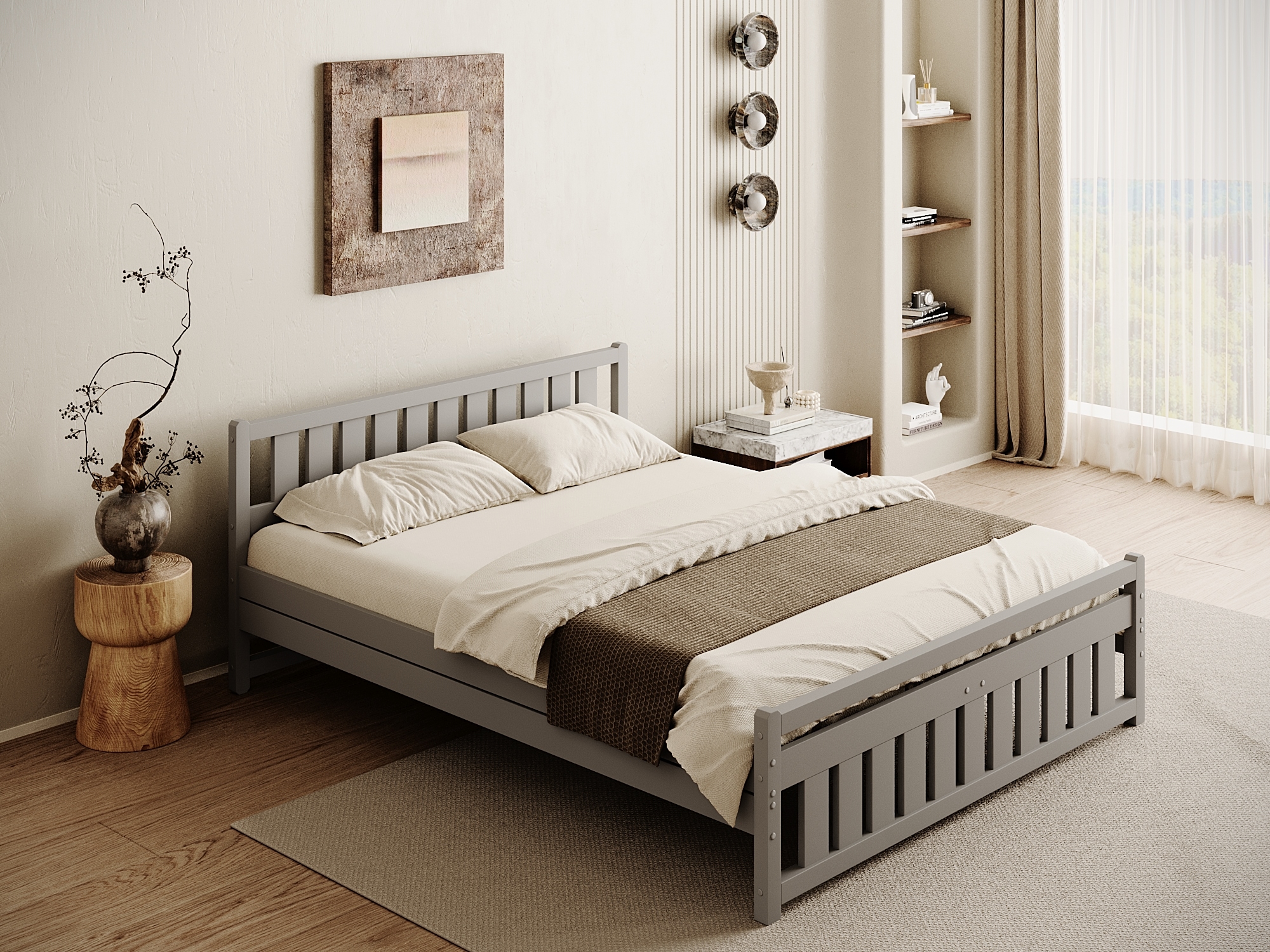 Кровать двуспальная "IMPERIA" 140х200 (Серый)