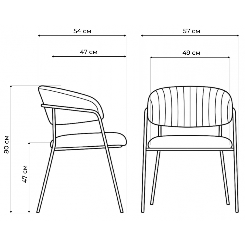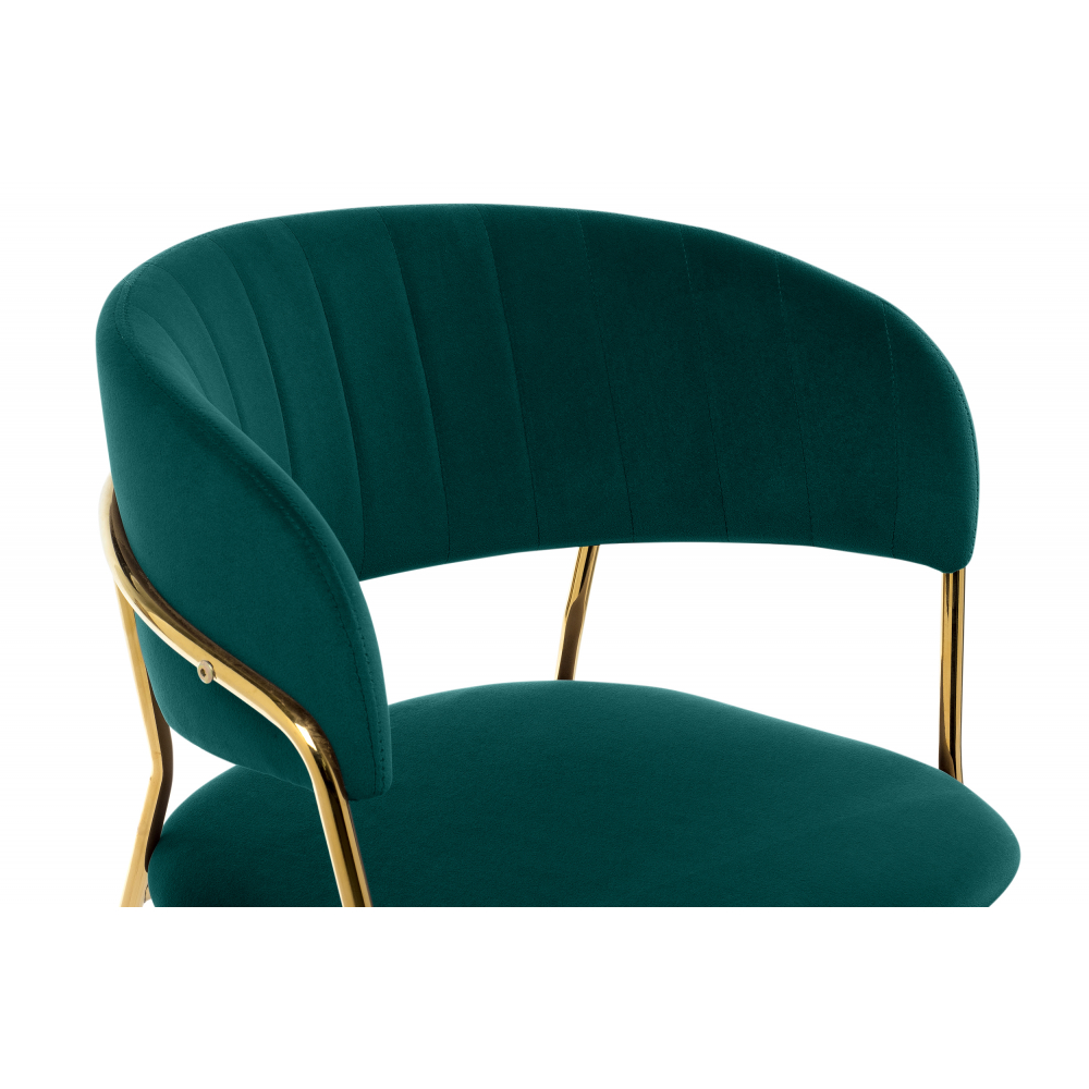 Высота подлокотников: 77 см. Материал каркаса - Металл; Материал сиденья - Велюр; Материал ножек - Металл; Материал обивки - Велюр; Цвет каркаса - Золотой; Цвет ножек - Золотой; Ширина - 57; Глубина - 54; Высота - 83; Ширина сиденья - 49; Глубина сиденья - 47; Высота сиденья - 46.