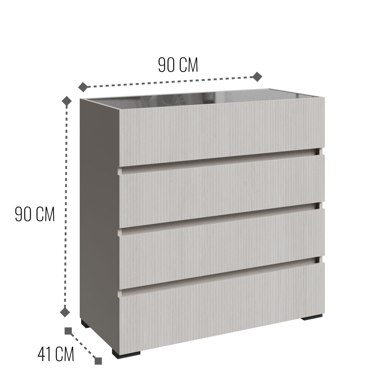 Комод шириной 90 см с рельефным фасадом и закалённым стеклом