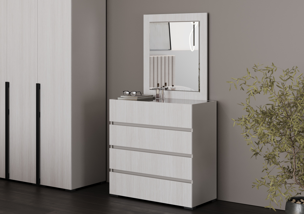 Этот современный и практичный белый комод с ящиками станет идеальным выбором для вашей спальни, гостиной или гардеробной. Стильный дизайн и компактная ширина всего 90 см позволяют ему органично вписаться в любой интерьер.