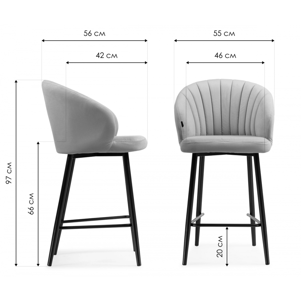 Высота подножки: 20 см Материал каркаса - Металл; Материал сиденья - Велюр; Материал ножек - Металл; Материал обивки - Велюр; Цвет каркаса - Белый; Цвет сиденья - Зеленый; Цвет ножек - Белый; Цвет обивки - Зеленый; Ширина - 55; Глубина - 56; Высота - 97; Ширина сиденья - 46; Глубина сиденья - 42; Высота сиденья - 66.