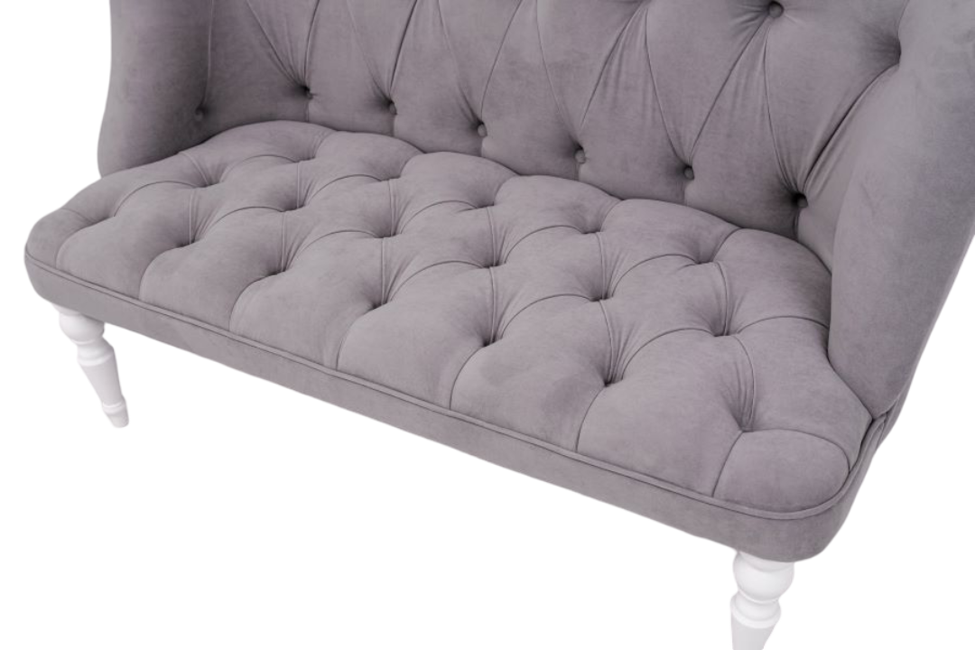 Современная классика с каретной стяжкой. Двухместный диван с изящным изголовьем с каретной стяжкой и резными ножками из натурального дерева никого не оставит равнодушным., он безусловно добавит элегантности атмосфере вашего дома. Выполнен в современном стиле с использованием качественных и долговечных материалов, каркас изготовлен из массива дерева хвойных пород и березовой фанеры. Наполнитель - пенополиуретан, что охначает повышенную прочность и службу на долгие годы.