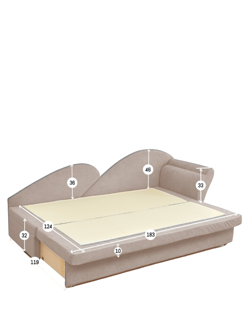 Угловой диван-кровать модель 212 от мебельной фабрики Brendoss — это удачное сочетание стиля ар-деко и функциональности. Его уникальный дизайн, напоминающий тахту, с твёрдой спинкой и мягким подлокотником привносит в интерьер утончённость и комфорт. Диван идеально впишется как в просторные гостиные, так и в компактные помещения, такие как кухня или детская комната. В сложенном виде его размеры составляют 209x66x78 см, а спальное место имеет параметры 124x183 см. Одна из половин спального места более жёсткая, что добавляет удобства для тех, кто предпочитает твёрдую поверхность. Механизм трансформации «еврософа» позволяет легко и быстро разложить диван, превращая его в полноценное спальное место. Под сиденьем расположен вместительный ящик для хранения белья с подсветкой, что делает его особенно удобным для использования в тёмное время суток. Габариты ящика — 172x60x23 см. Диван изготовлен на прочном каркасе из березовой фанеры и бруса, что обеспечивает его надёжность при максимальной нагрузке до 300 кг. Наполнитель из плотного ППУ толщиной 90, 40, 20 и 10 мм обеспечивает оптимальную поддержку и долговечность. Обивка выполнена из водоотталкивающего велюра, устойчивого к когтям мелких животных, гипоаллергенного и лёгкого в уходе. Материал дышащий, что создаёт комфорт в любое время года. Модель доступна с правой или левой ориентацией угла, позволяя выбрать наиболее удобный вариант для вашего пространства. В комплекте также идут две декоративные подушки, добавляющие дополнительный уют. Подлокотник и спинка требуют самостоятельной установки, что легко выполнимо с помощью прилагаемой инструкции. Диван 212 станет прекрасным выбором для любого помещения, сочетая комфорт, стиль и практичность в одном предмете мебели.