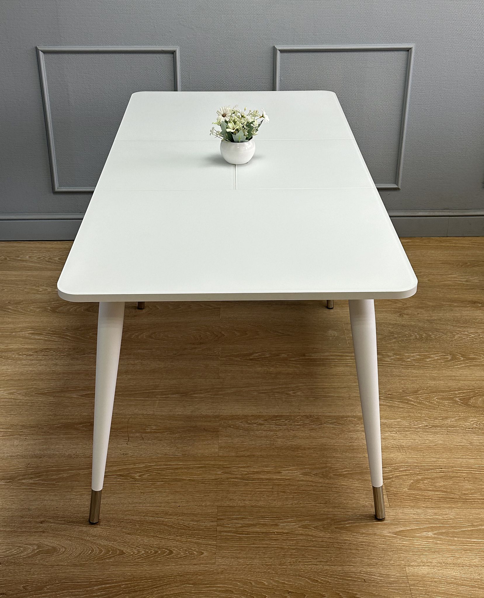 Стол Kenner K1100 раздвижной, стекло белое сатин (Белый/Хром) Код I0000447916