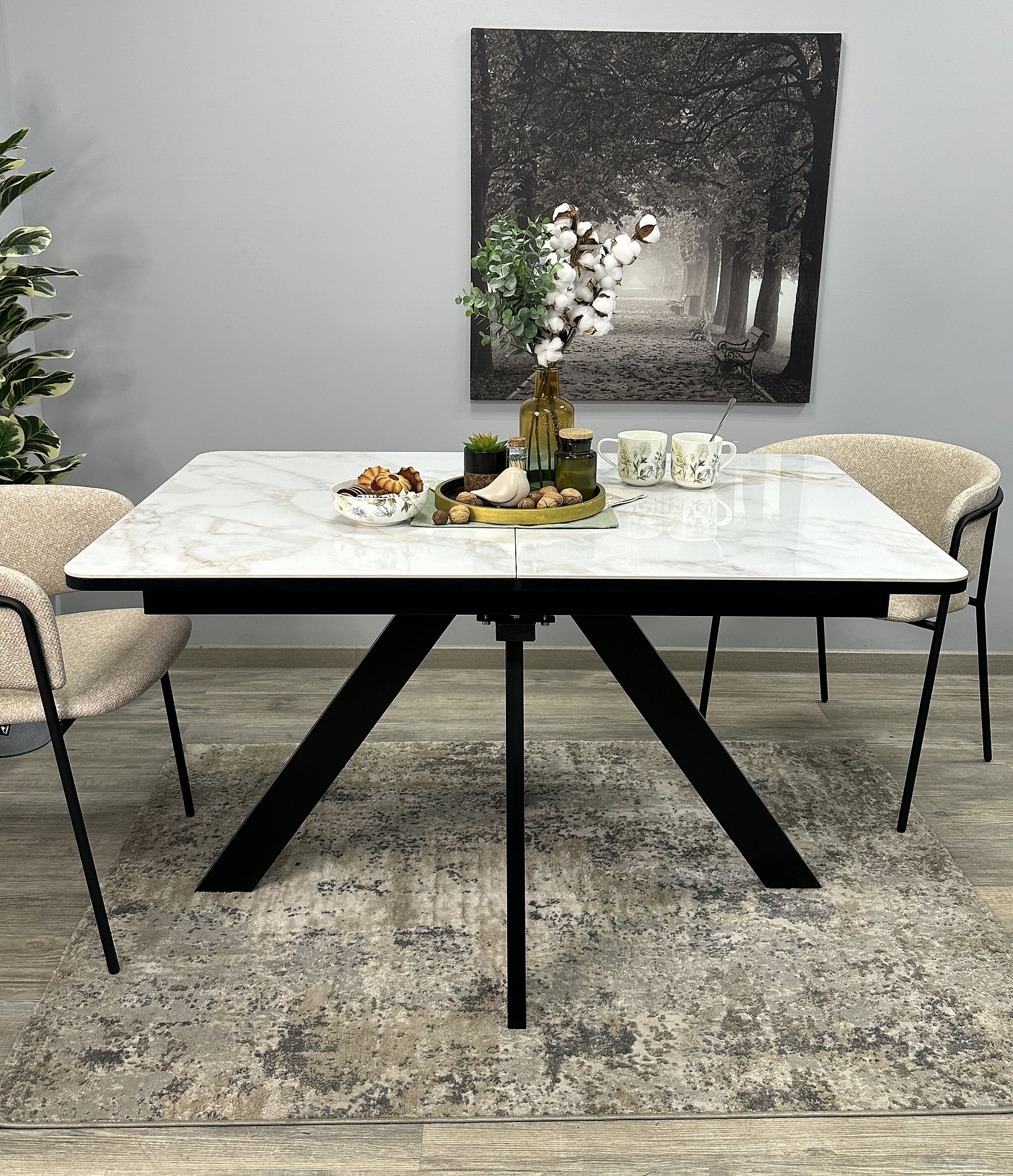 Просторный стол с устойчивыми ножками, оставляющими достаточно пространства для комфортного размещения ног, особенно высоких людей. Столешница тонко оформлена, что создает дополнительное пространство и обеспечивает легкую посадку. Благодаря раздвижной конструкции длина стола может достигать 2 метров, предоставляя возможность без труда расположить всех приглашенных гостей.