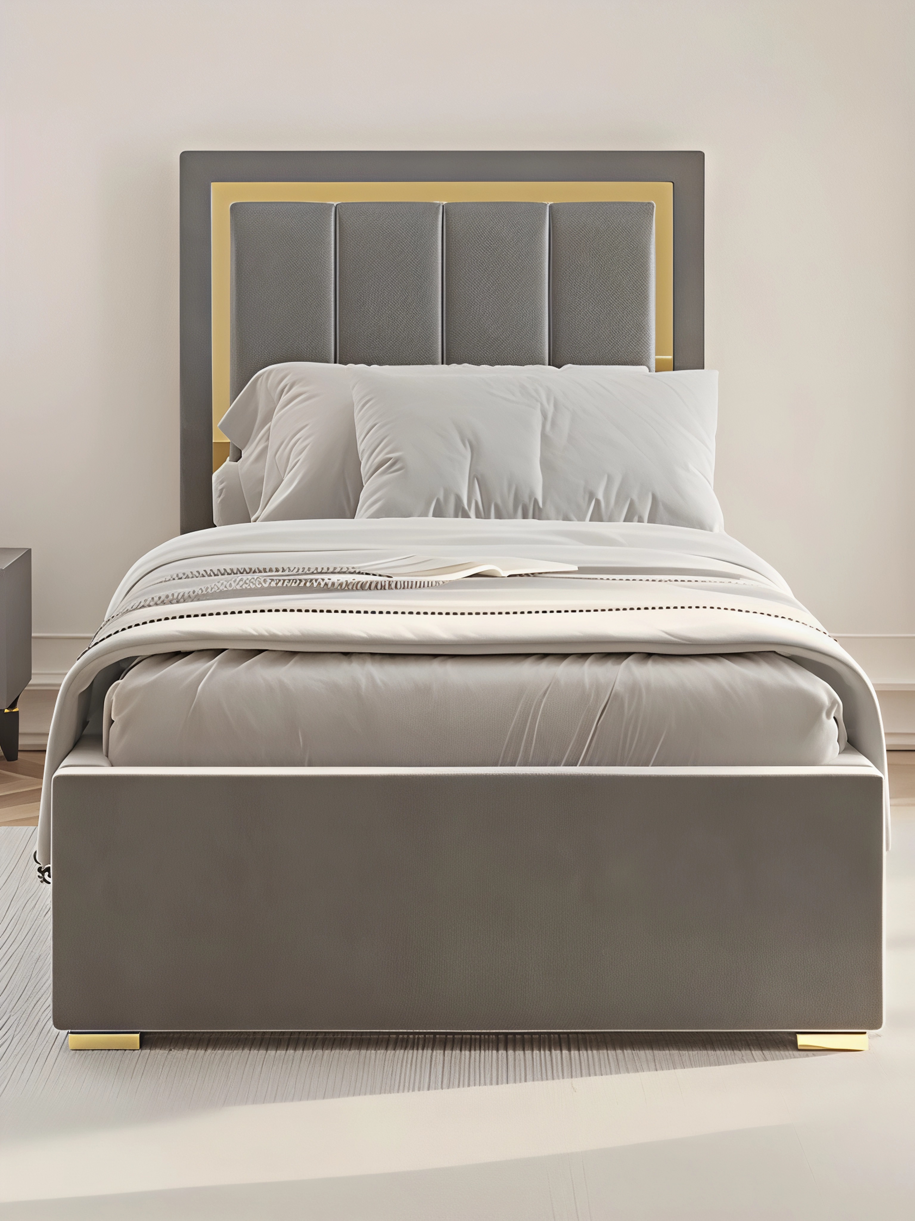Кровать Валенсия односпальная с ПМ 90х200 см велюр, золото (Серый) Код I0000450007