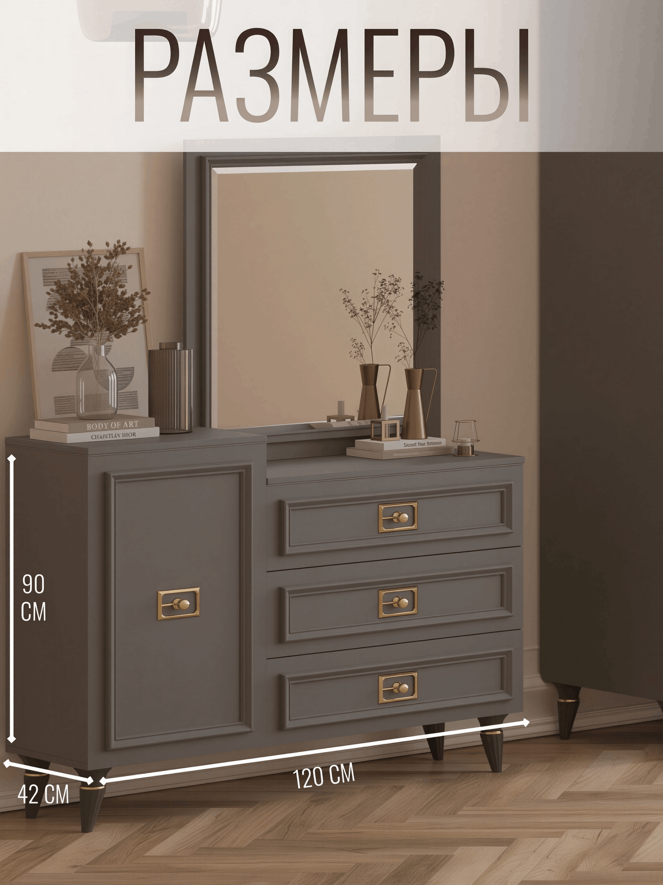 Отзывы о Столплит Комод Валенсия 120х42x90 см золото Серый