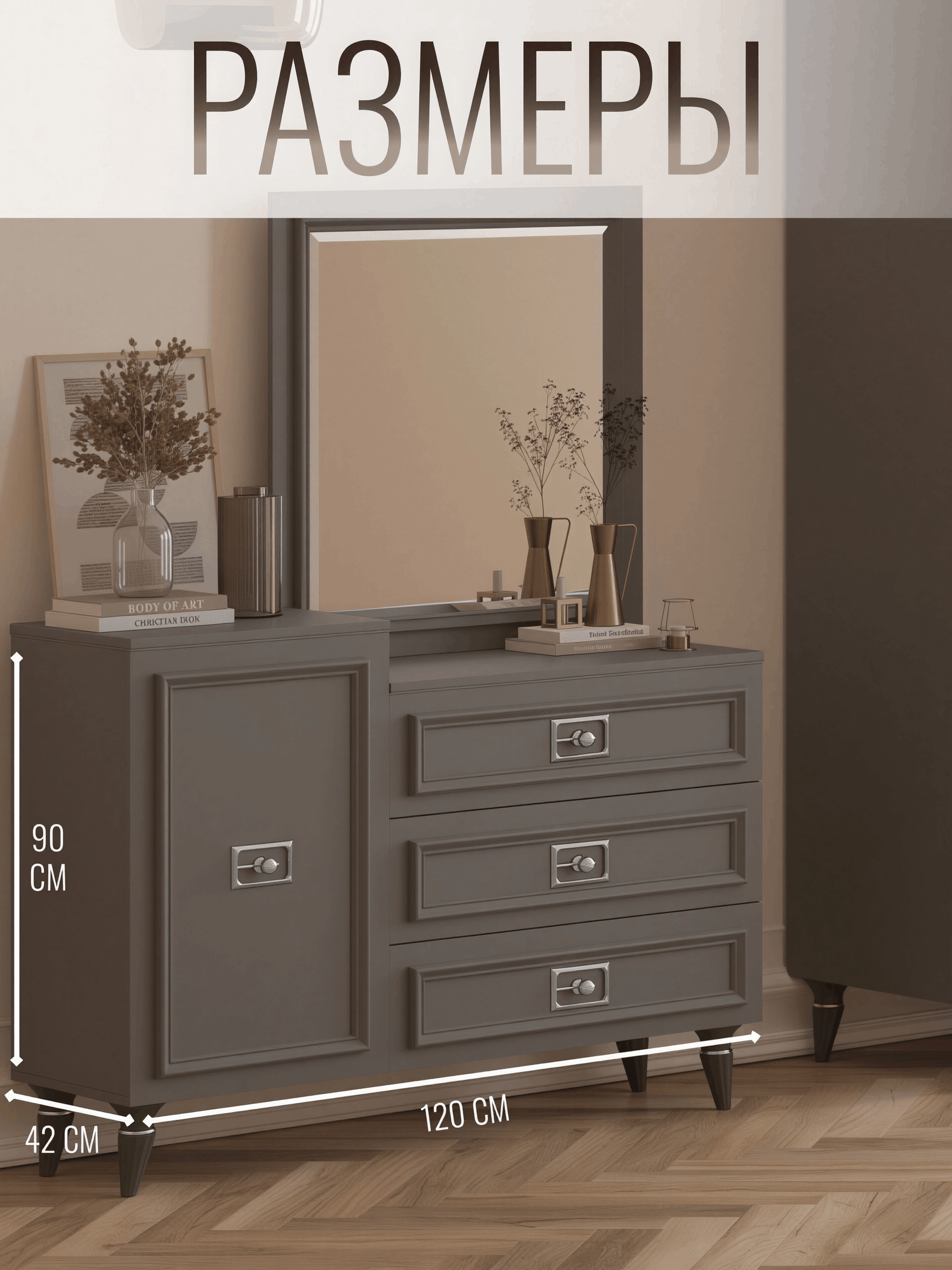 Отзывы о Столплит Комод Валенсия 120х42x90 см серебро Серый