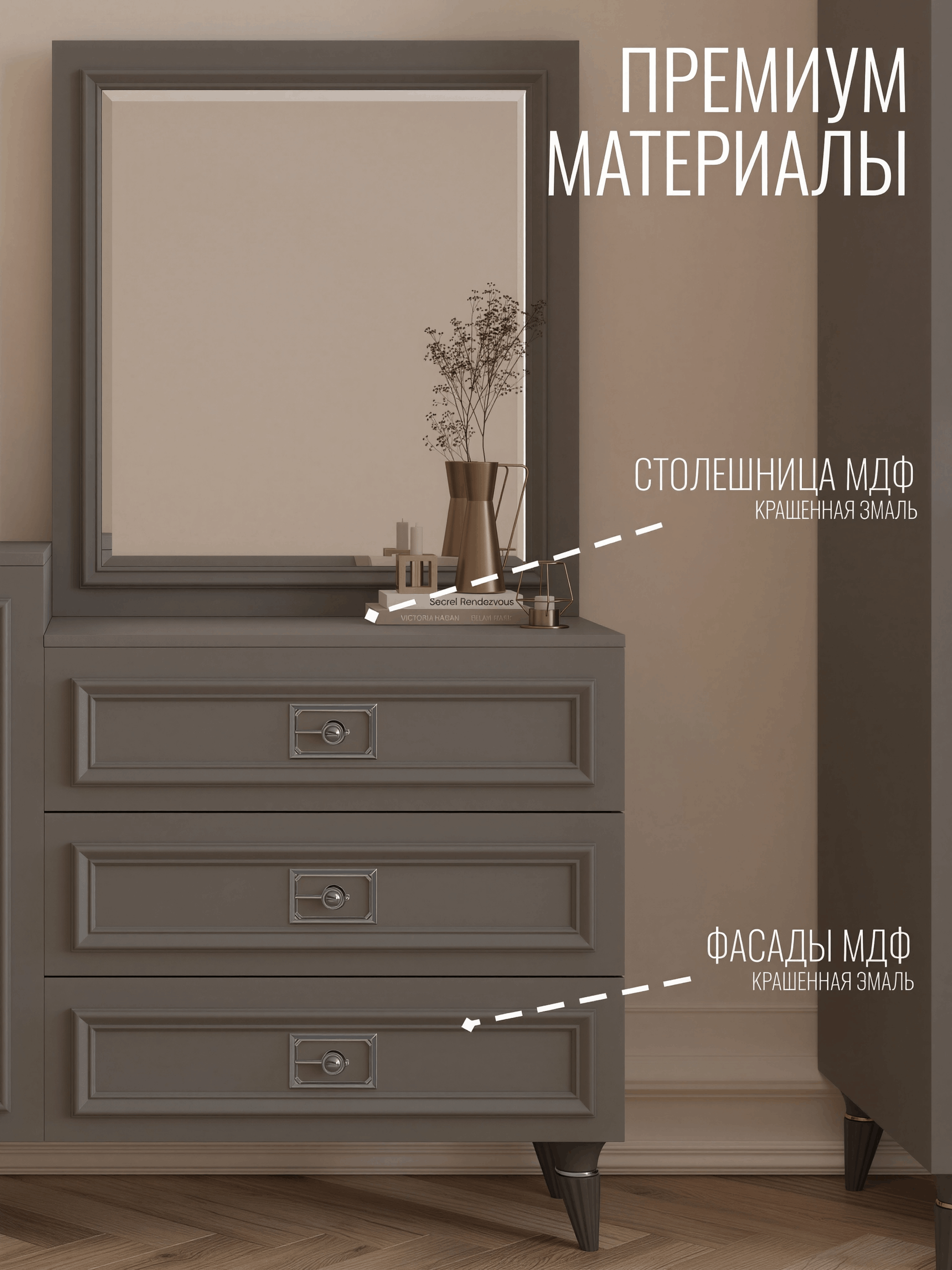 Комод изготовлен из высококачественного усиленного ЛДСП, обеспечивающего прочность и долговечность изделия. Вся внешняя фурнитура также российского производства. Комод оборудован выдвижными ящиками и открываемыми полками, что обеспечивает удобство хранения одежды и организации предметов. Открывные полки комода оборудованы простыми в установке, но долговечными в использовании четырехшарнирными петлями, которые выдержат даже большую нагрузку на дверцы. А шариковые направляющие полного выдвижения в ящиках шкафа с доводчиками плавного закрытия, т.е. при задвижении ящика, направляющие мягко и бесшумно докатывают его до закрытого состояния, создают дополнительный комфорт в использовании. Обращаем Ваше внимание на то-что внешняя фурнитура всех наших изделий, такая как ручки и ножки, выполнены из полностью безопасного АВS пластика, которые придают нашей мебели особый эстетический вид. В случае необходимости, Вы можете докупить всю фурнитуру отдельно в нашем магазине. Комод с красивыми круглыми шарообразными ручками на высоких ножках- это сочетание итальянского стиля с современными тенденциями. Этот комод всегда будет стильным и актуальным элементом интерьера. Идеально подойдёт для спален, гостинных, прихожих или кабинетов, где требуется не только функциональность, но и изысканный дизайн. Подчеркнет вашу индивидуальность и стиль, а также поможет создать гармоничный интерьер в любом помещении. Приобретите этот комод в неоклассическом стиле на ножках с выдвижными ящиками и добавьте изысканности и функциональности вашему дому. Создайте пространство, в котором каждая деталь выражает ваш неповторимый вкус и стиль. Важно! Мы являемся единственным официальным поставщиком данной мебели, по этому у нас самые выгодные цены!