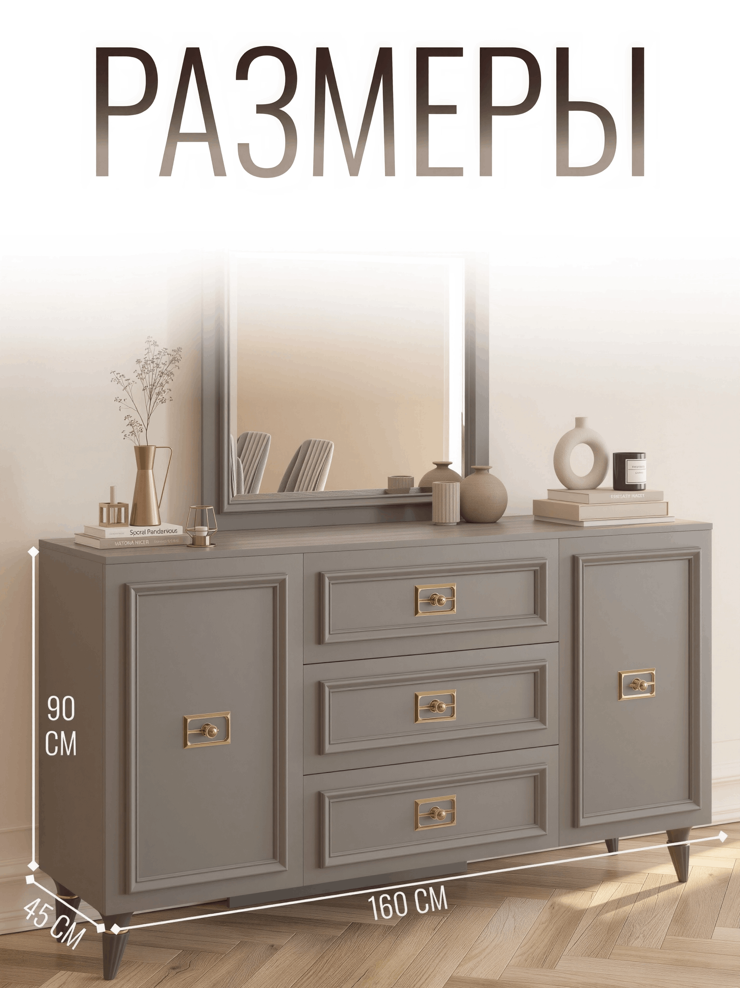 Комод с красивыми круглыми шарообразными ручками на высоких ножках- это сочетание итальянского стиля с современными тенденциями. Этот комод всегда будет стильным и актуальным элементом интерьера. Идеально подойдёт для спален, гостинных, прихожих или кабинетов, где требуется не только функциональность, но и изысканный дизайн. Подчеркнет вашу индивидуальность и стиль, а также поможет создать гармоничный интерьер в любом помещении.