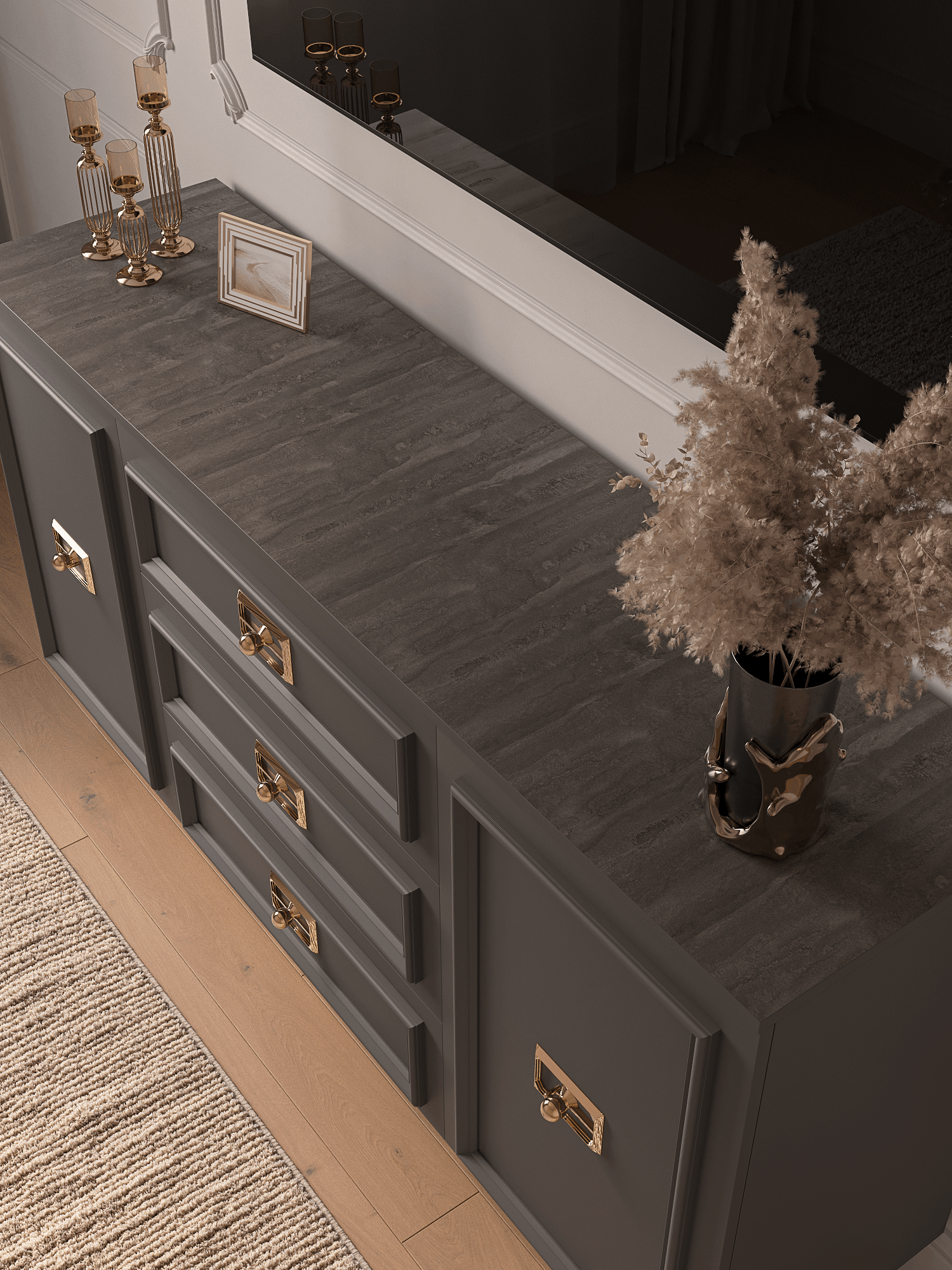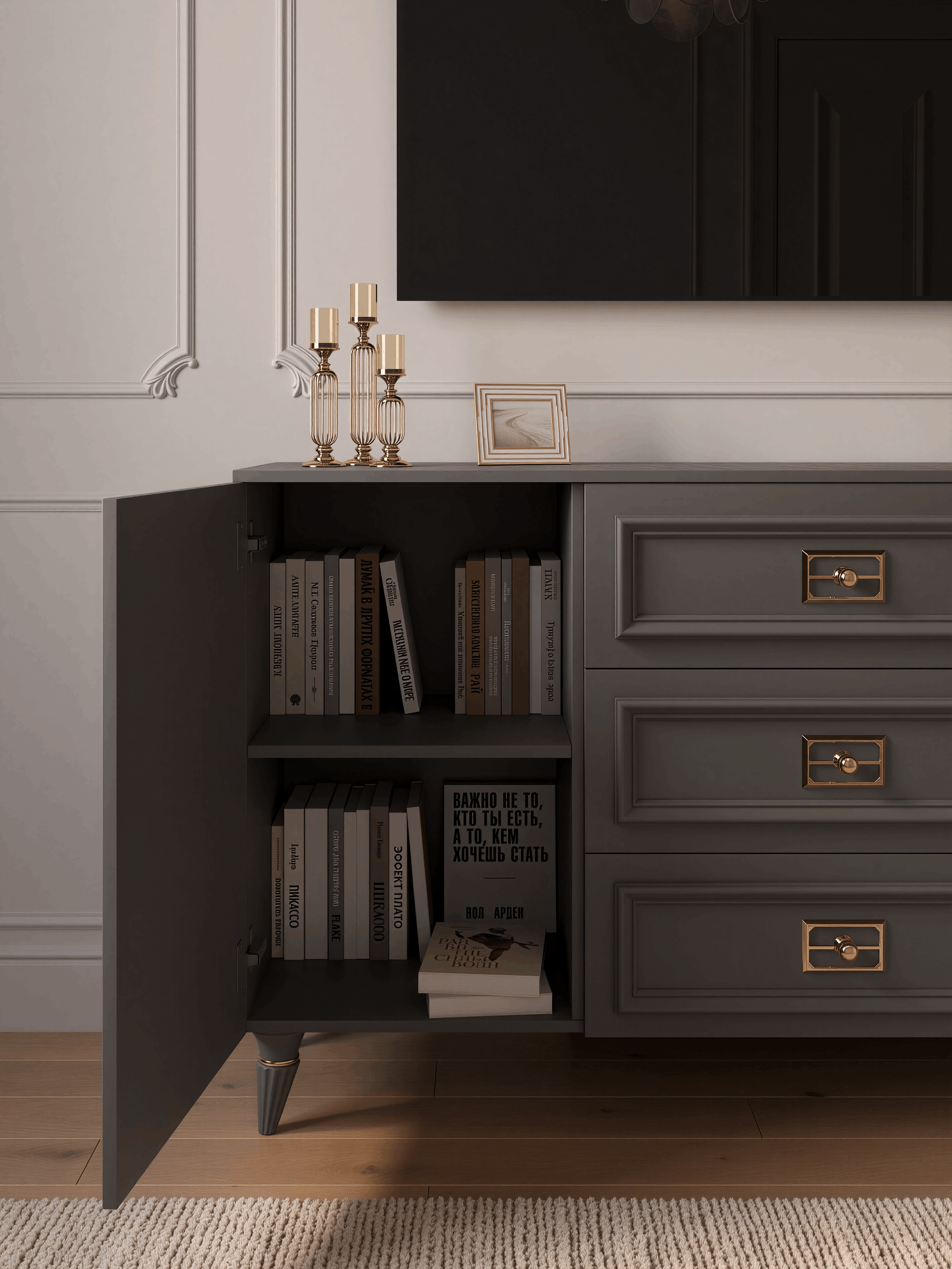 Когда у нас были гости, многие думали, что комод дорогой и из какой-то дизайнерской коллекции. На самом деле он стоил вполне разумных денег, и это приятно удивляет. Особенно понравилась текстура фасадов — выглядит действительно дорого.